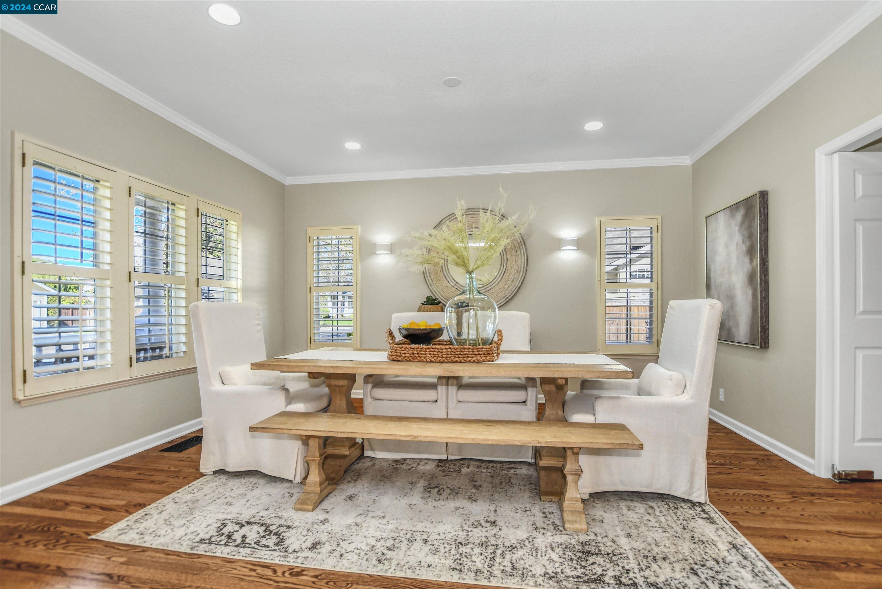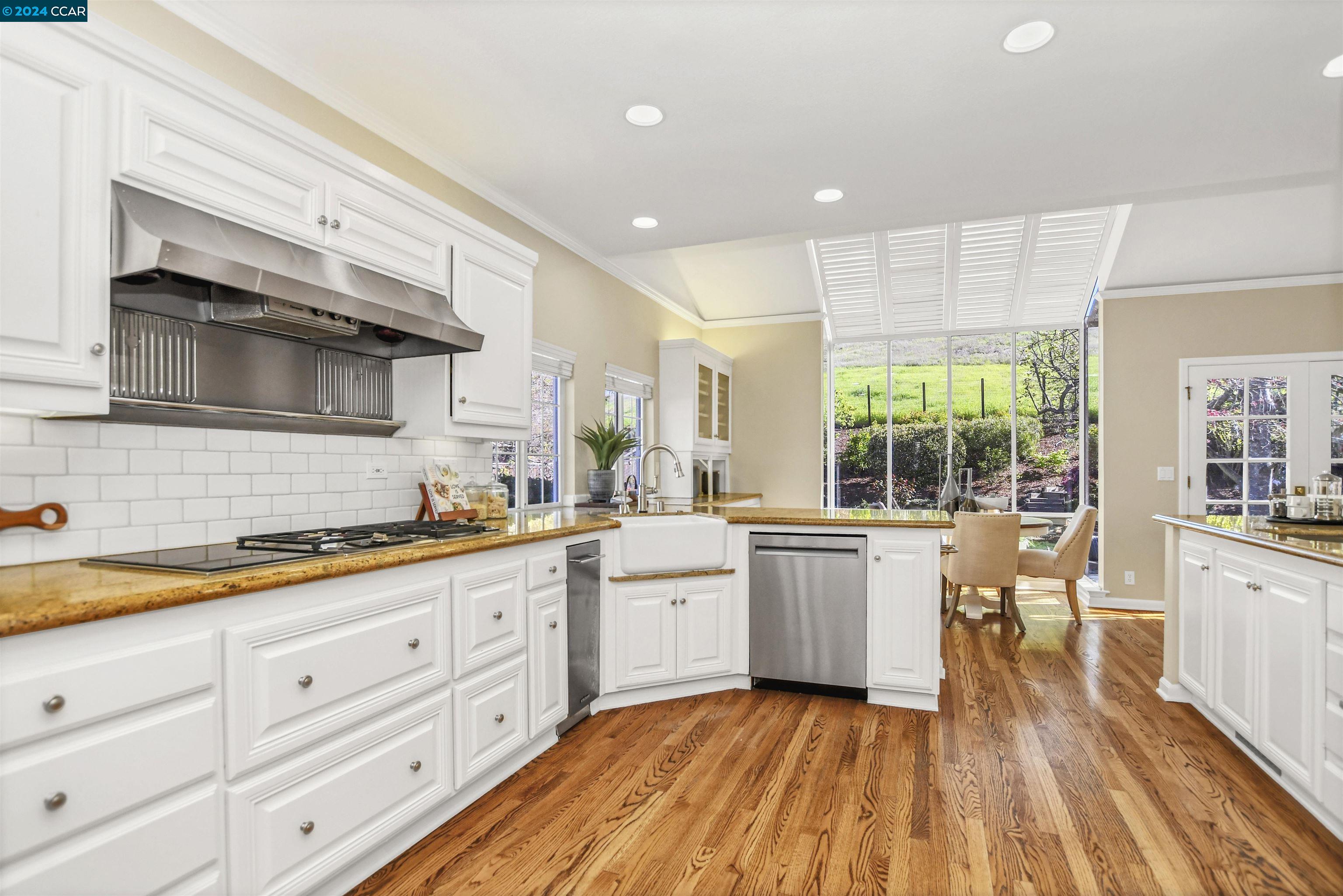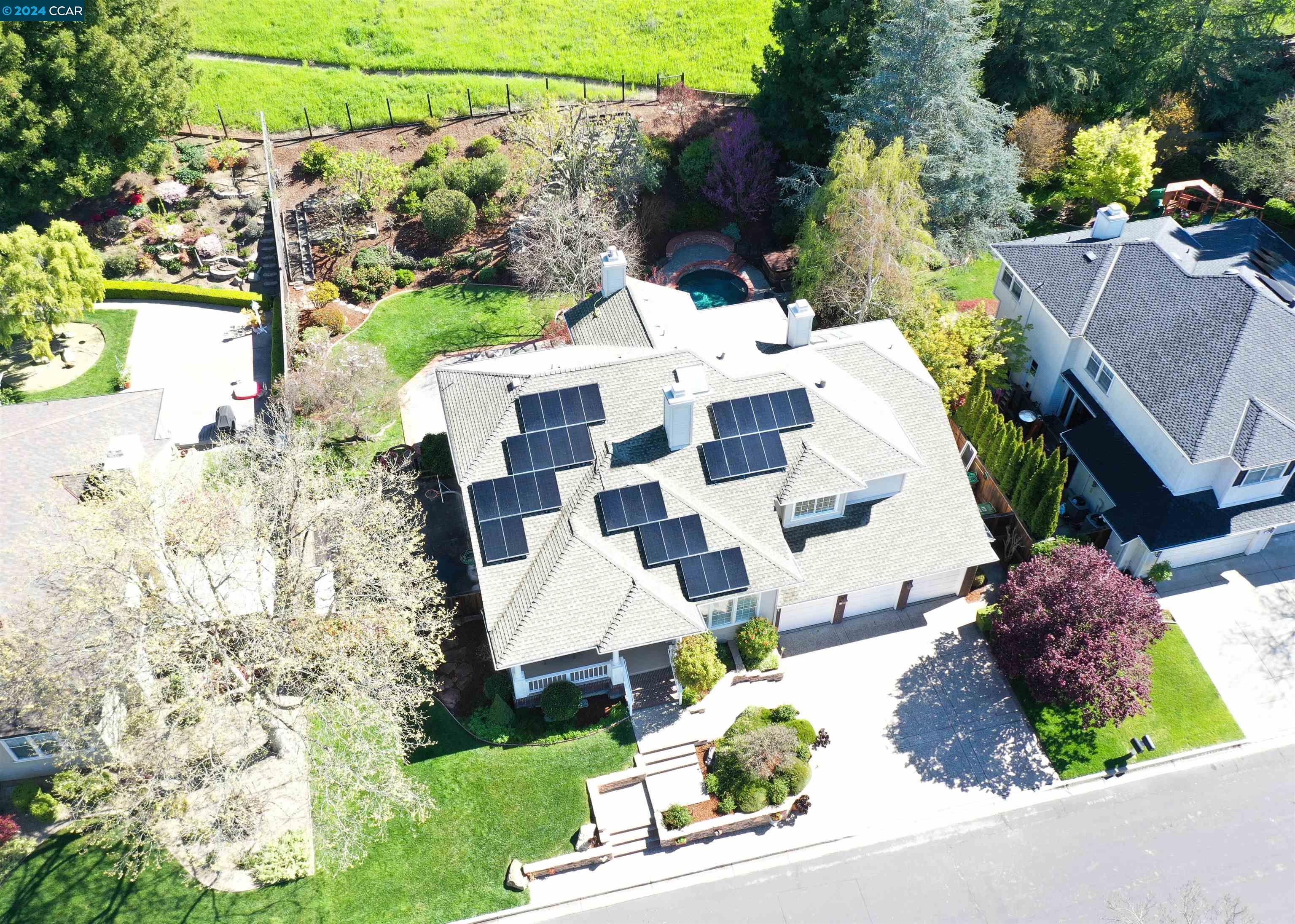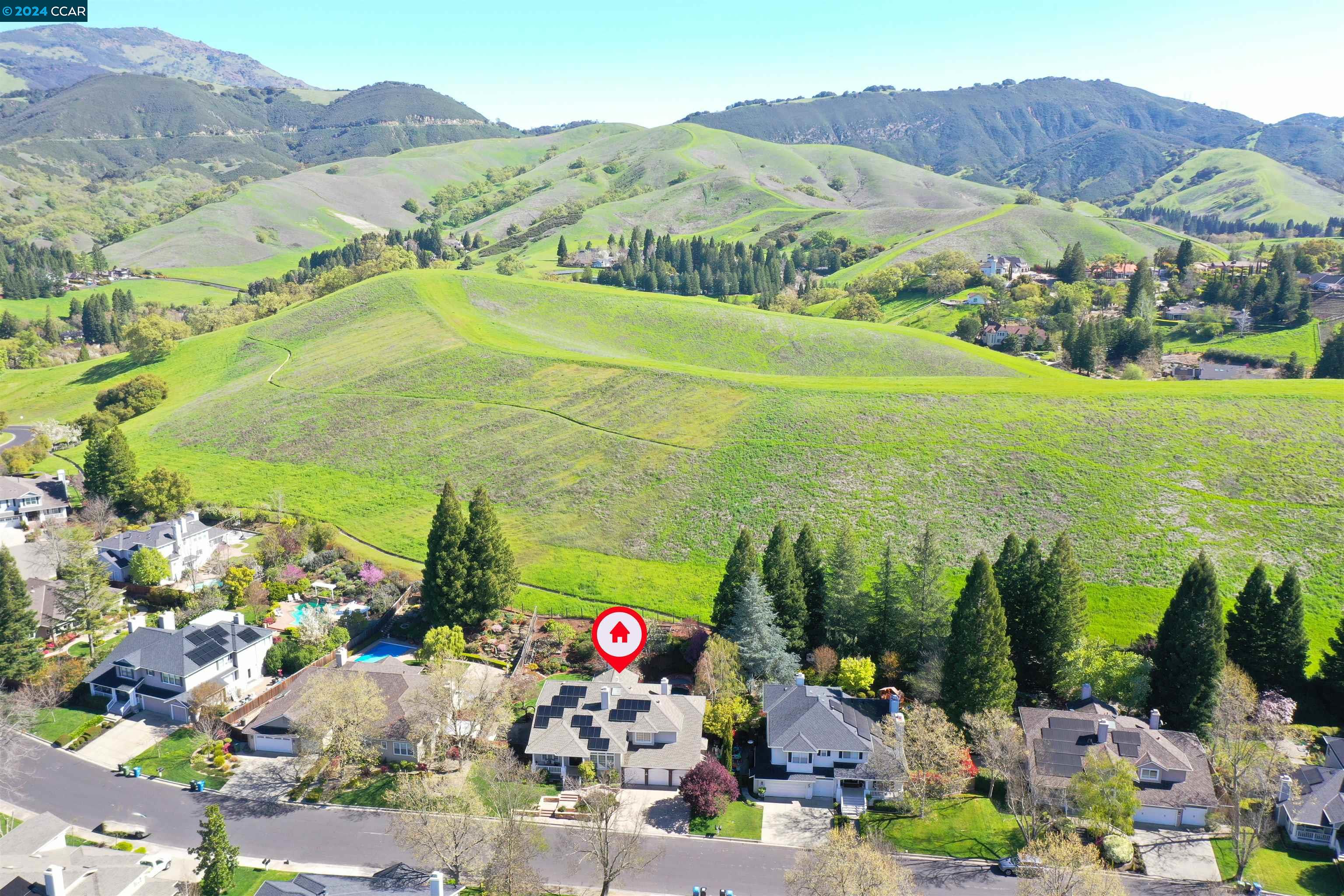Introducing a captivating retreat in the heart of Danville's highly sought-after Magee Ranch community. This 3565 sqft, 4 bed/3 bath home on 1/3 acre lot exhibits beautiful curb appeal, no rear neighbors and backs to open space. Light and bright! All new LED lights and interior designer paint and hardware. Nicely updated through out. Chefs kitchen w/breakfast nook has stainless steel everywhere. Built in fridge, oven, range, vent hood and steaming drawer. 2 sinks and lots of counter space. Walk in pantry & dual wine fridges. Large family, living & dining rooms. Huge skylight floor to ceiling window brings the outside in. Wainscot trim is abundant & adds a luxury touch. Large Primary bedroom has office suite, fireplace and great view of the hills. Updated primary bath features large tiles, custom tub & glass shower. Spacious upstairs rooms share a remodeled bath with solid surface, 2 sinks and tile floors. The ground floor bedroom has an adjacent fully remodeled bath and a private entrance. The seamless integration of luxury and comfort with a beautiful backyard featuring an inviting pool and hot tub, sport court, along with a charming front porch ideal for relaxation. Spacious 3-car garage provides ample storage. Owned solar. Convenient to Blackhawk Plaza/680 and SRVUSD Schools.