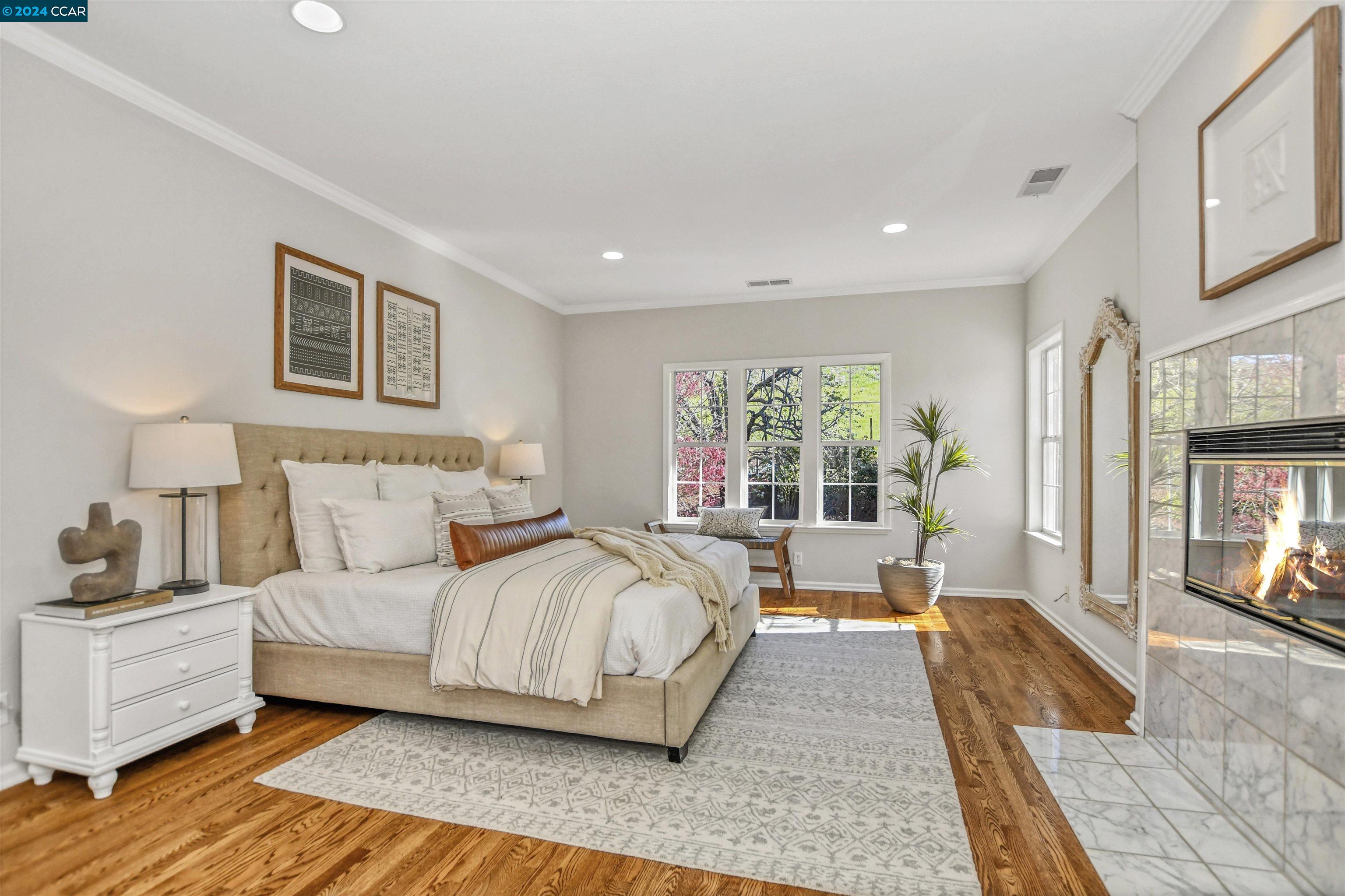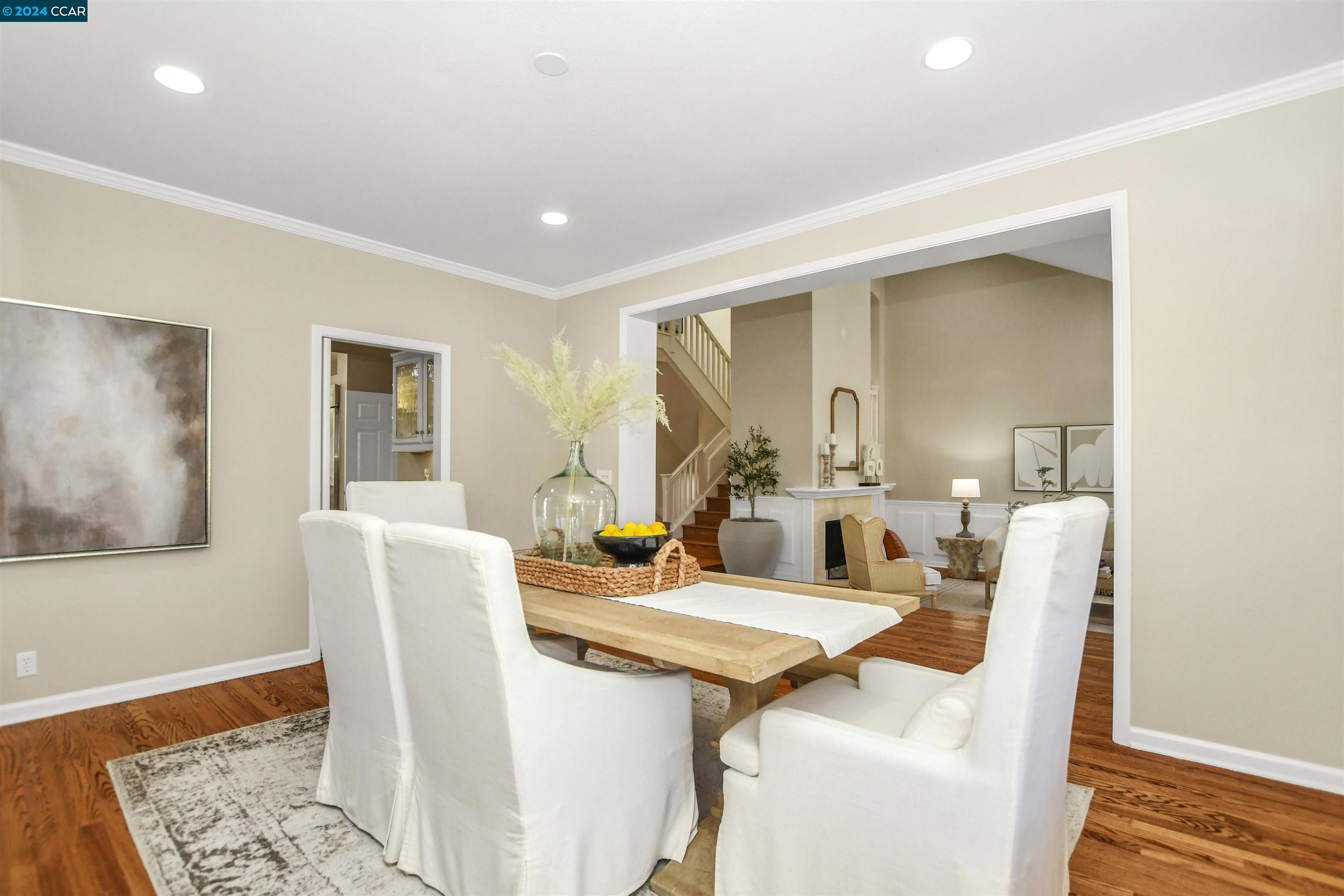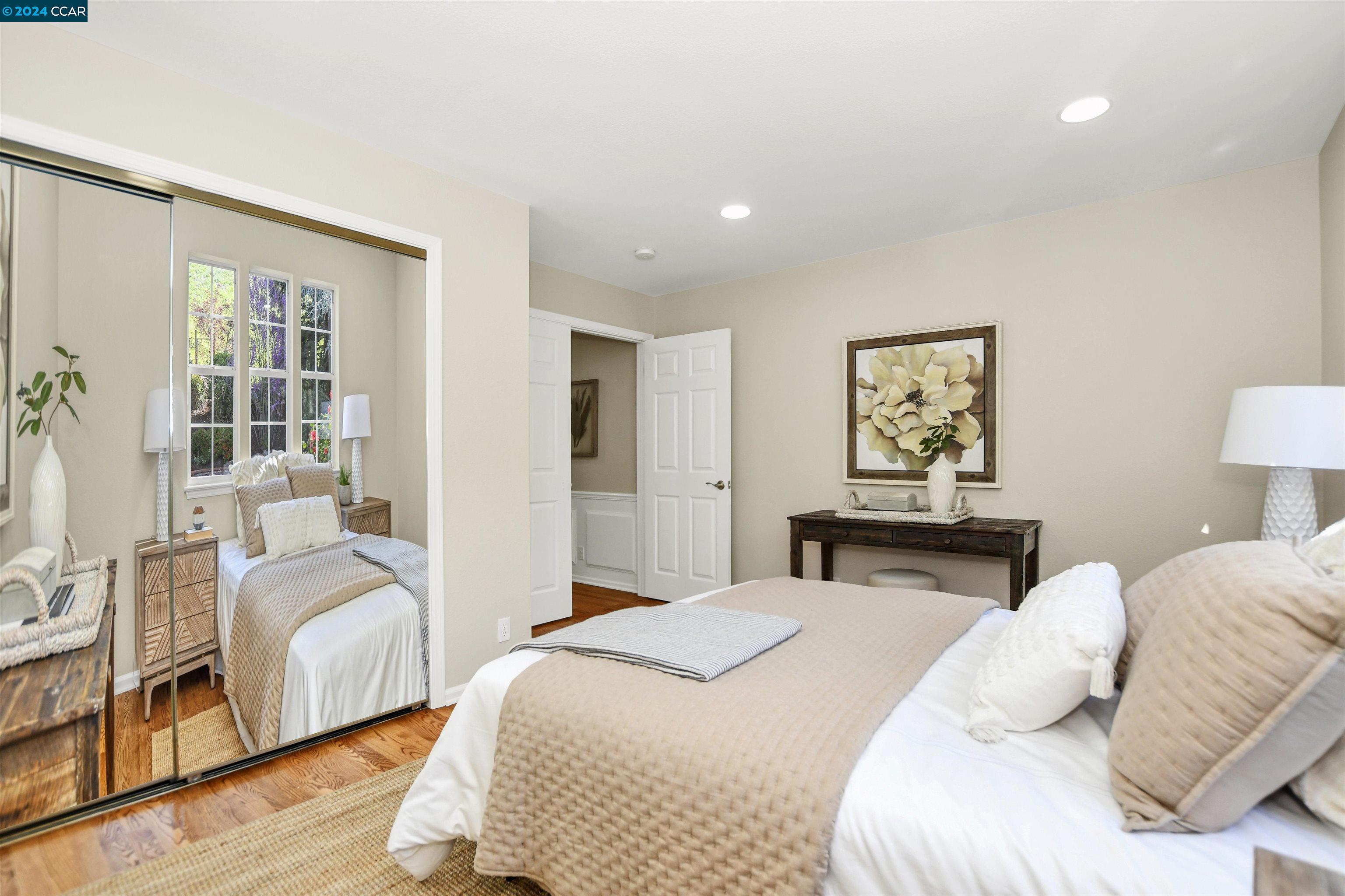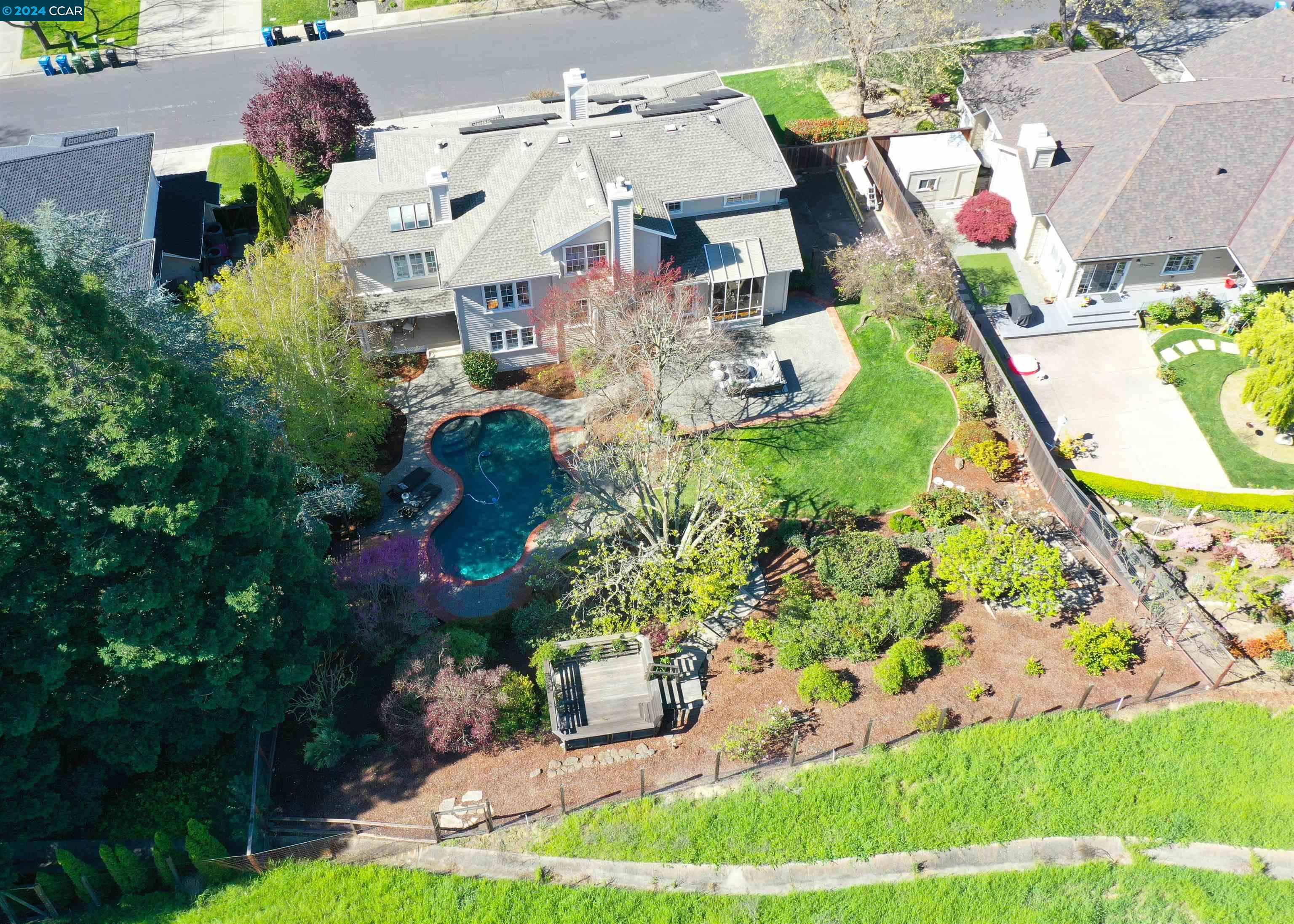 Introducing a captivating retreat in the heart of Danville's highly sought-after Magee Ranch community. This 3565 sqft, 4 bed/3 bath home on 1/3 acre lot exhibits beautiful curb appeal, no rear neighbors and backs to open space. Light and bright! All new LED lights and interior designer paint and hardware. Nicely updated through out. Chefs kitchen w/breakfast nook has stainless steel everywhere. Built in fridge, oven, range, vent hood and steaming drawer. 2 sinks and lots of counter space. Walk in pantry & dual wine fridges. Large family, living & dining rooms. Huge skylight floor to ceiling window brings the outside in. Wainscot trim is abundant & adds a luxury touch. Large Primary bedroom has office suite, fireplace and great view of the hills. Updated primary bath features large tiles, custom tub & glass shower. Spacious upstairs rooms share a remodeled bath with solid surface, 2 sinks and tile floors. The ground floor bedroom has an adjacent fully remodeled bath and a private entrance. The seamless integration of luxury and comfort with a beautiful backyard featuring an inviting pool and hot tub, sport court, along with a charming front porch ideal for relaxation. Spacious 3-car garage provides ample storage. Owned solar. Convenient to Blackhawk Plaza/680 and SRVUSD Schools.
