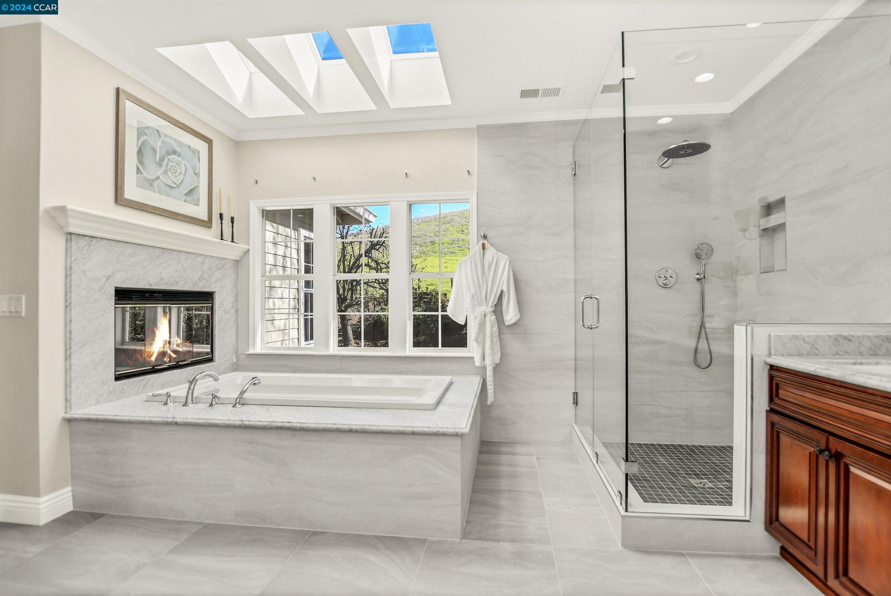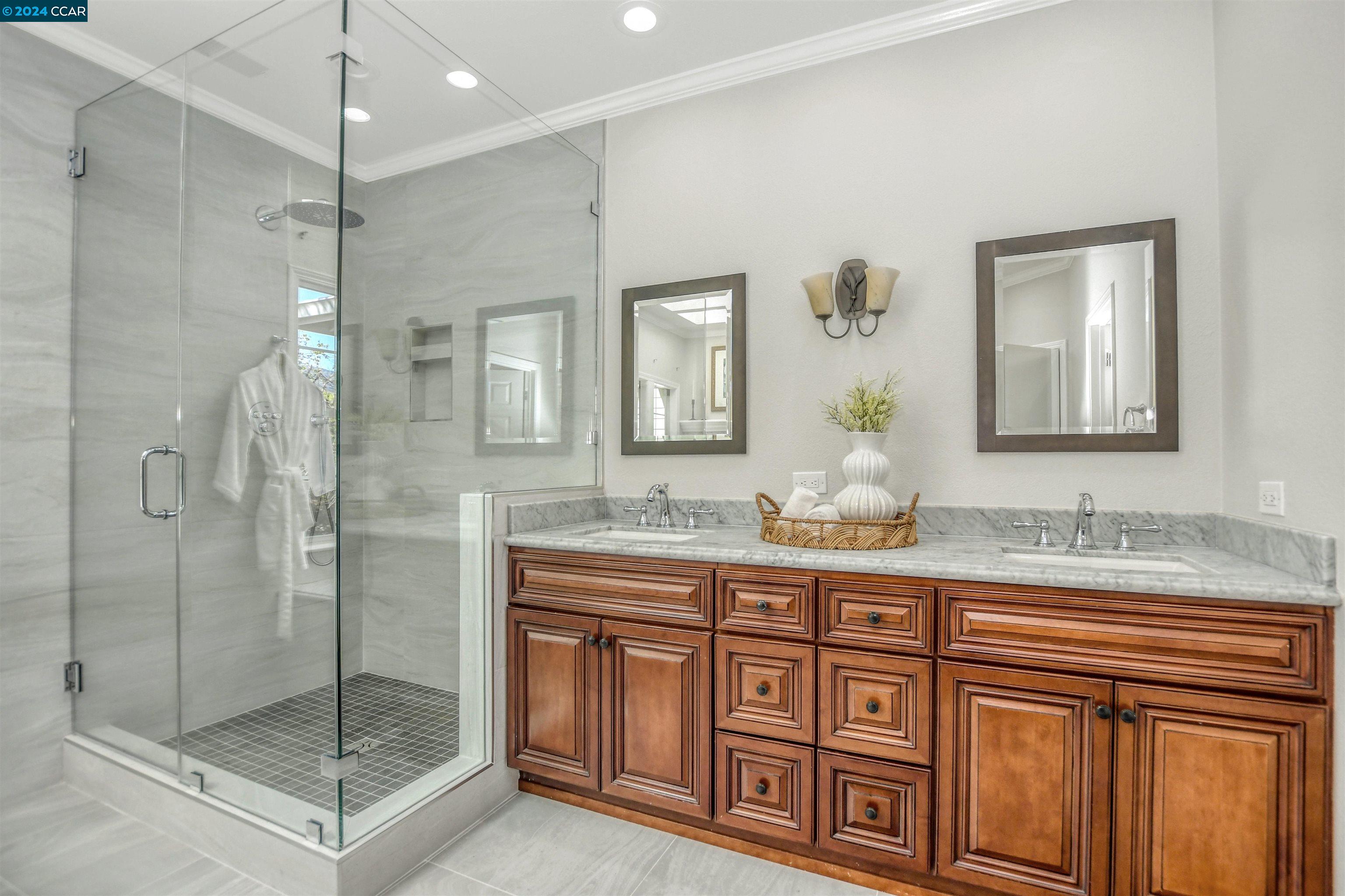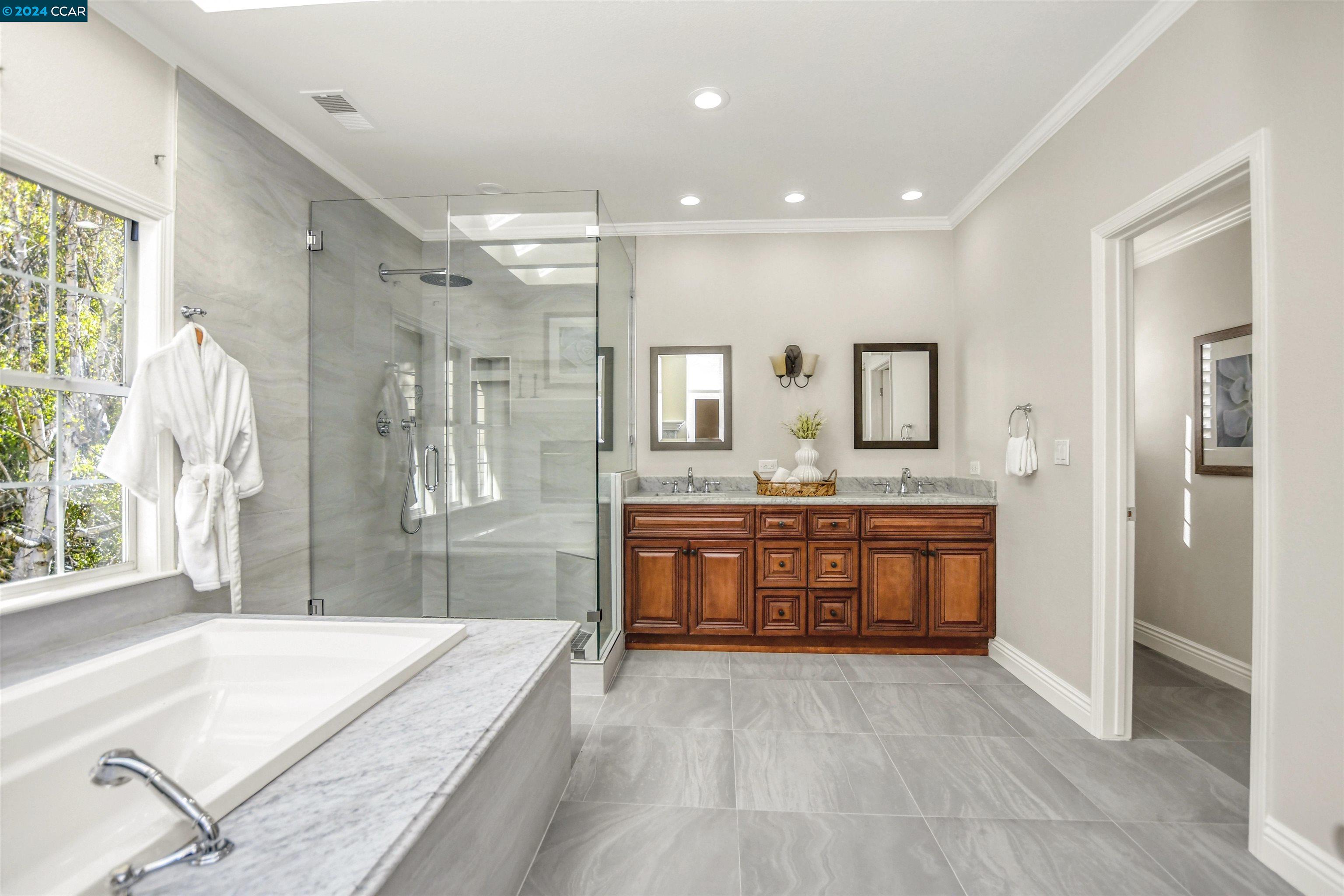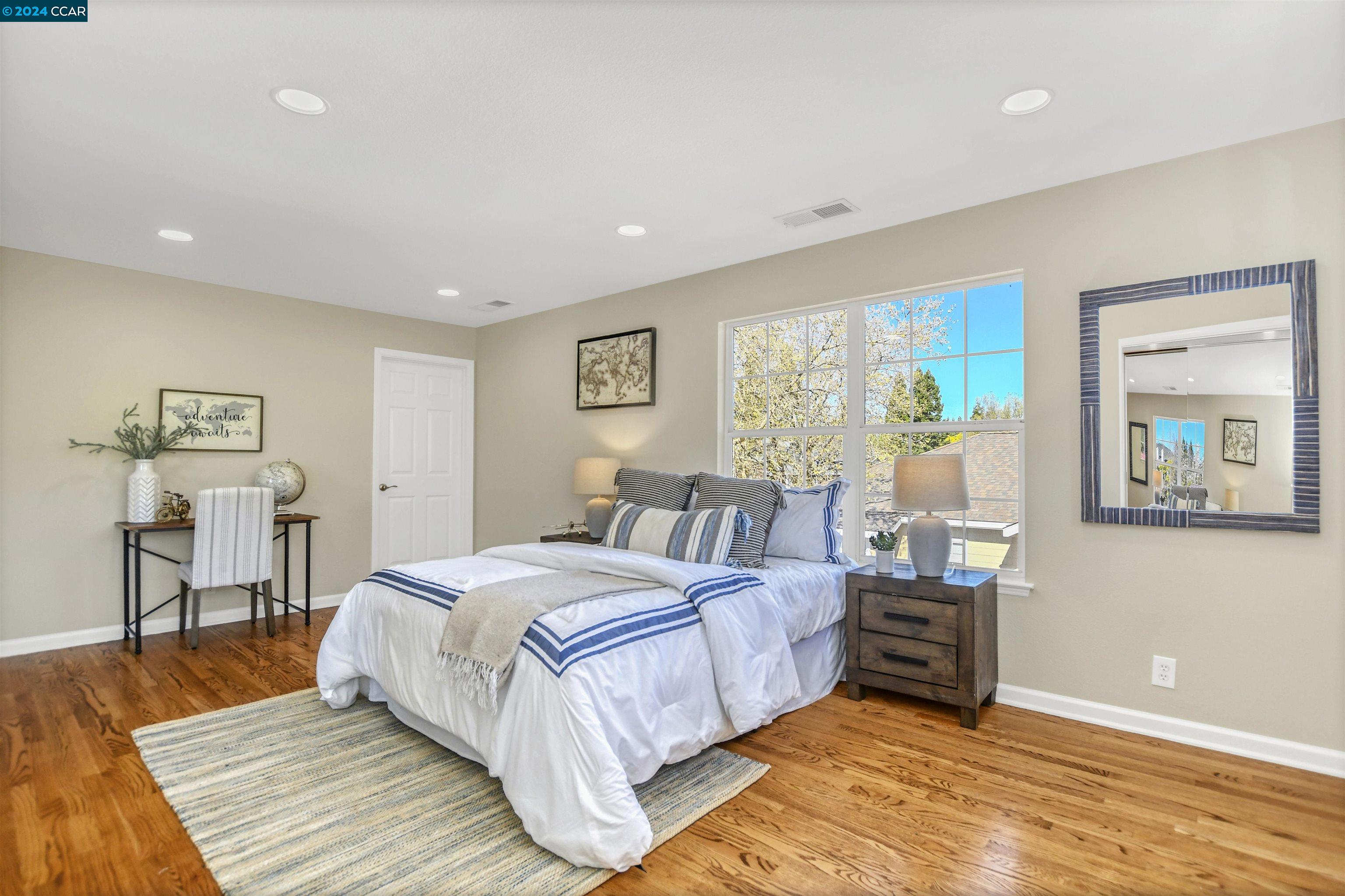 Introducing a captivating retreat in the heart of Danville's highly sought-after Magee Ranch community. This 3565 sqft, 4 bed/3 bath home on 1/3 acre lot exhibits beautiful curb appeal, no rear neighbors and backs to open space. Light and bright! All new LED lights and interior designer paint and hardware. Nicely updated through out. Chefs kitchen w/breakfast nook has stainless steel everywhere. Built in fridge, oven, range, vent hood and steaming drawer. 2 sinks and lots of counter space. Walk in pantry & dual wine fridges. Large family, living & dining rooms. Huge skylight floor to ceiling window brings the outside in. Wainscot trim is abundant & adds a luxury touch. Large Primary bedroom has office suite, fireplace and great view of the hills. Updated primary bath features large tiles, custom tub & glass shower. Spacious upstairs rooms share a remodeled bath with solid surface, 2 sinks and tile floors. The ground floor bedroom has an adjacent fully remodeled bath and a private entrance. The seamless integration of luxury and comfort with a beautiful backyard featuring an inviting pool and hot tub, sport court, along with a charming front porch ideal for relaxation. Spacious 3-car garage provides ample storage. Owned solar. Convenient to Blackhawk Plaza/680 and SRVUSD Schools.