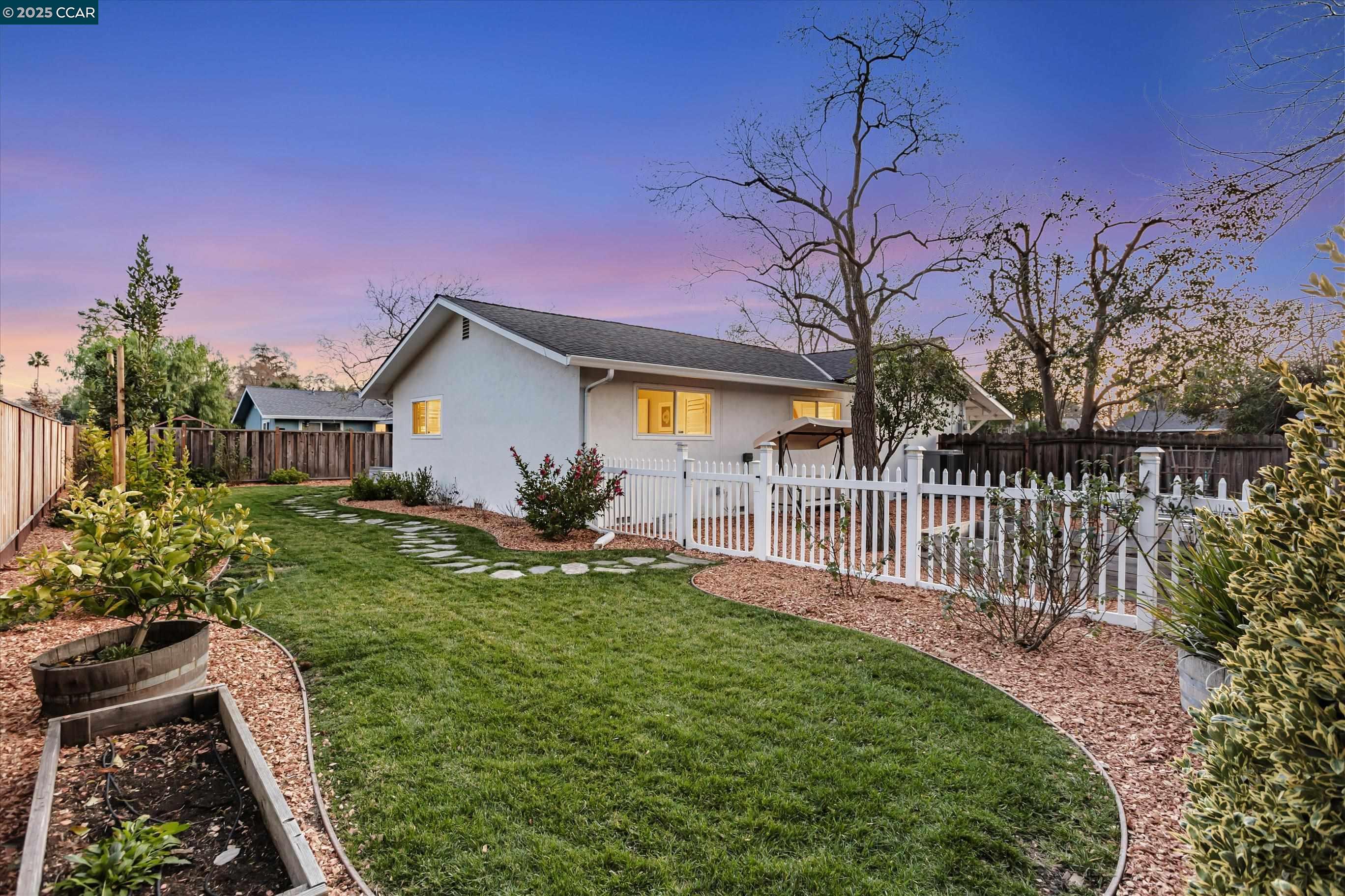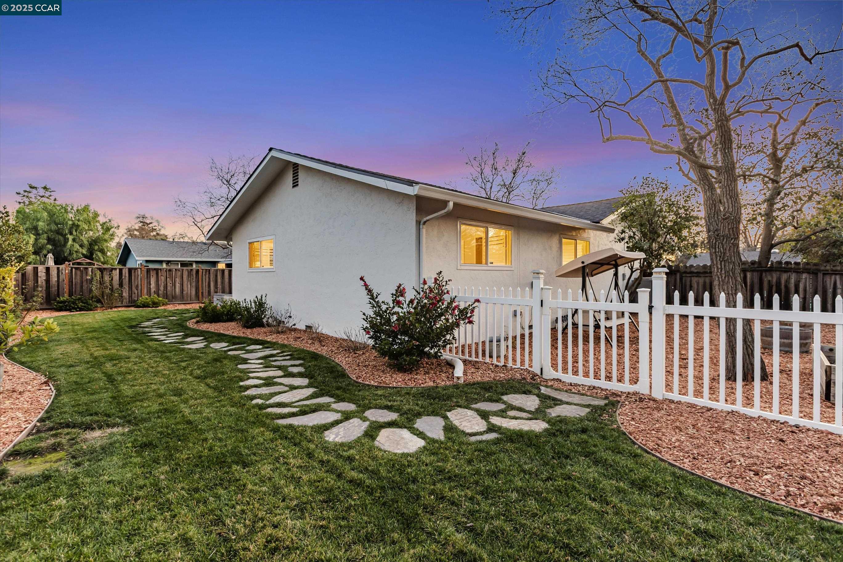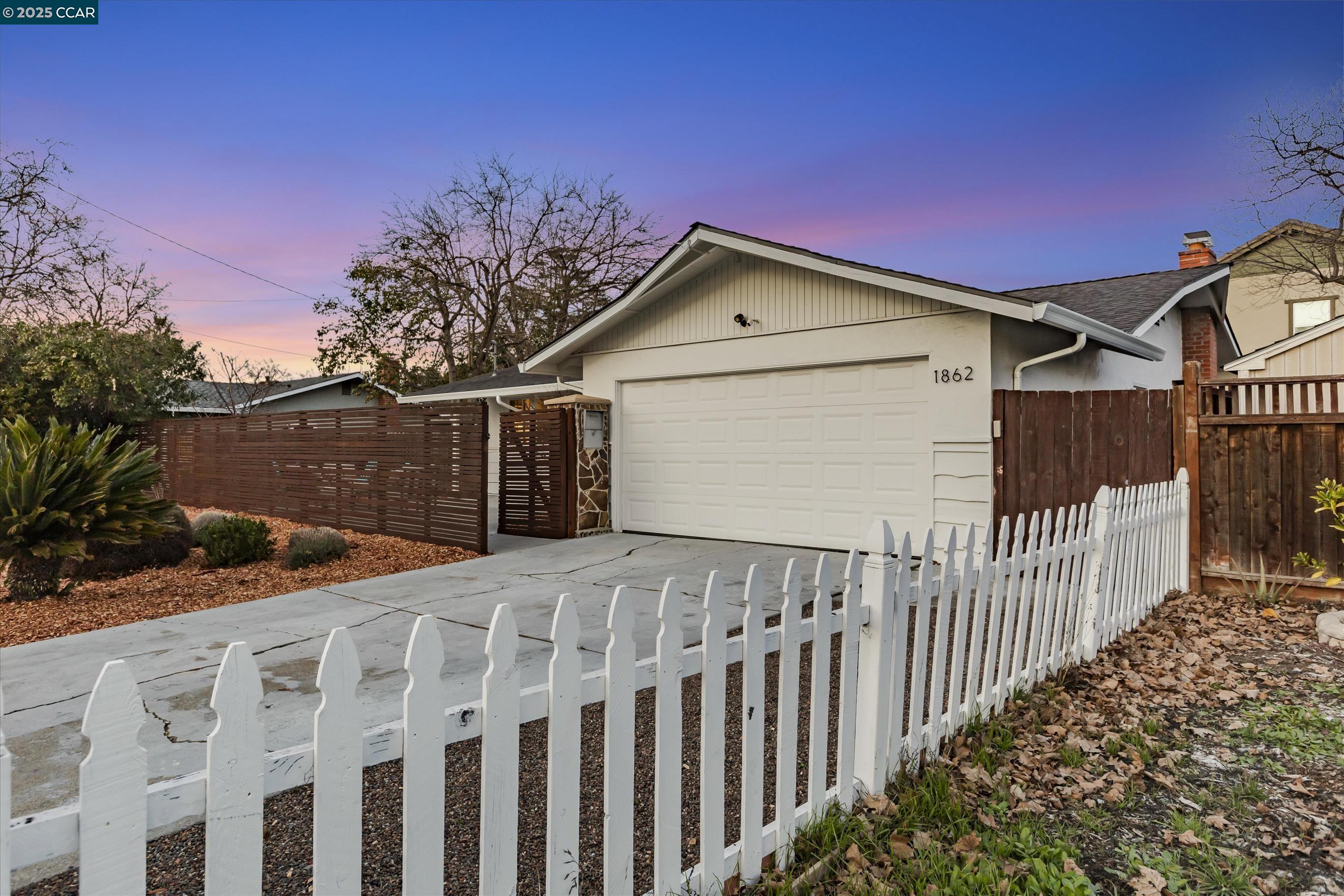 Welcome to this "Pottery Barn" perfect single-story retreat, ideally located on the Concord-Walnut Creek border. Privately tucked away on a quiet street, this home exudes charm, comfort, and modern updates, making it a true standout. With over $100K in recent upgrades, every detail has been thoughtfully designed to create a welcoming and stylish space. The updated kitchen and bathrooms boast a modern flair, while the refinished solid hardwood floors and designer paint add a touch of elegance throughout. The re-landscaped yard, complete with a large vegetable garden, invites you to embrace outdoor living at its finest. Enjoy cozy evenings by the fire-pit in the front yard, tucked behind a stunning horizontal fence for added privacy. Or, host gatherings on the spacious back deck that seamlessly blends indoor and outdoor entertaining. Inside, the open floor plan creates a warm and inviting atmosphere, with the dining room's fireplace and built-ins serving as the heart of the home. This single-story gem is not just a house--it's the perfect place to call "Home." Open Sat & Sunday 1/25 & 1/26 1:00-4:00. In the meantime enjoy this video of the house: https://vimeo.com/1049243343