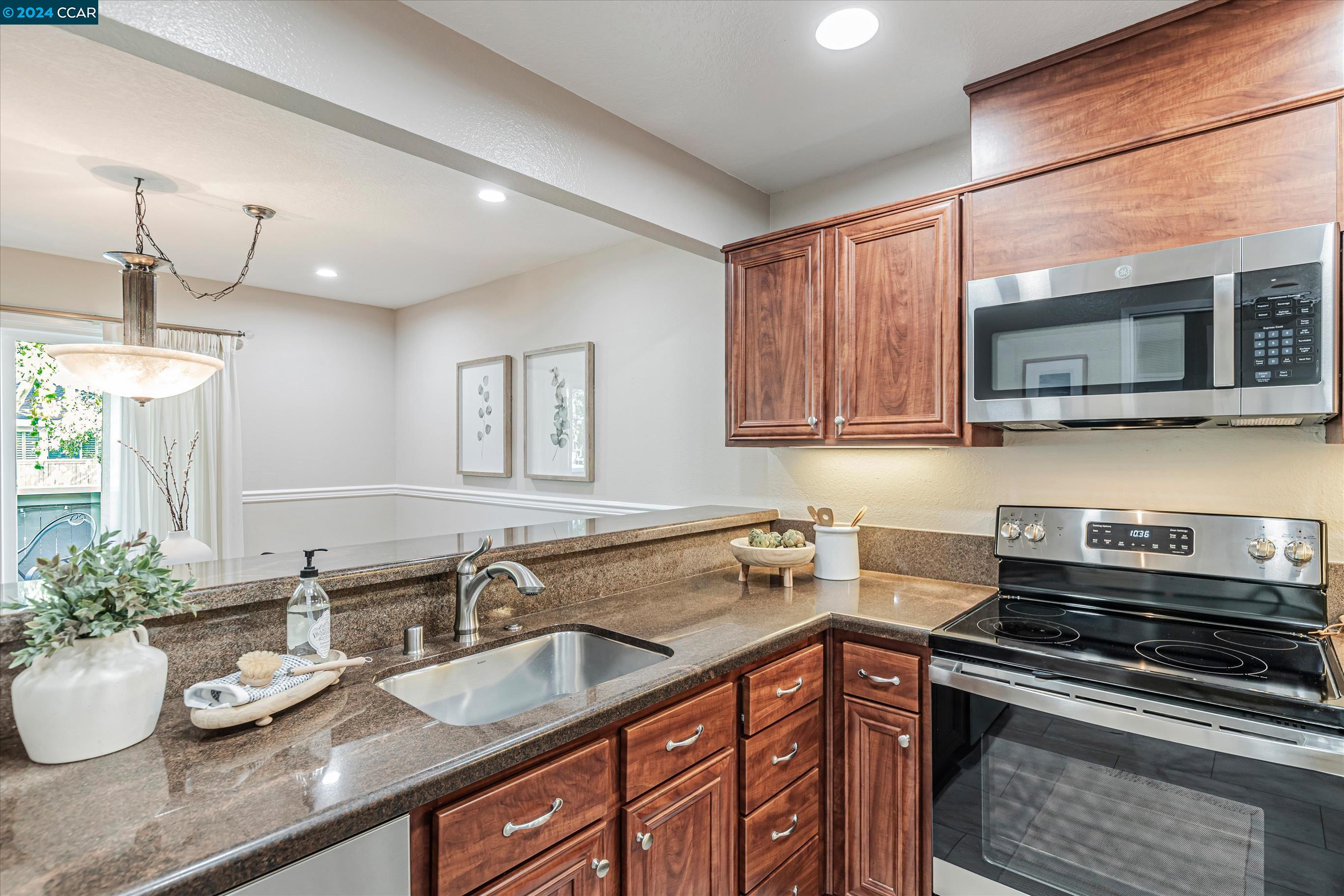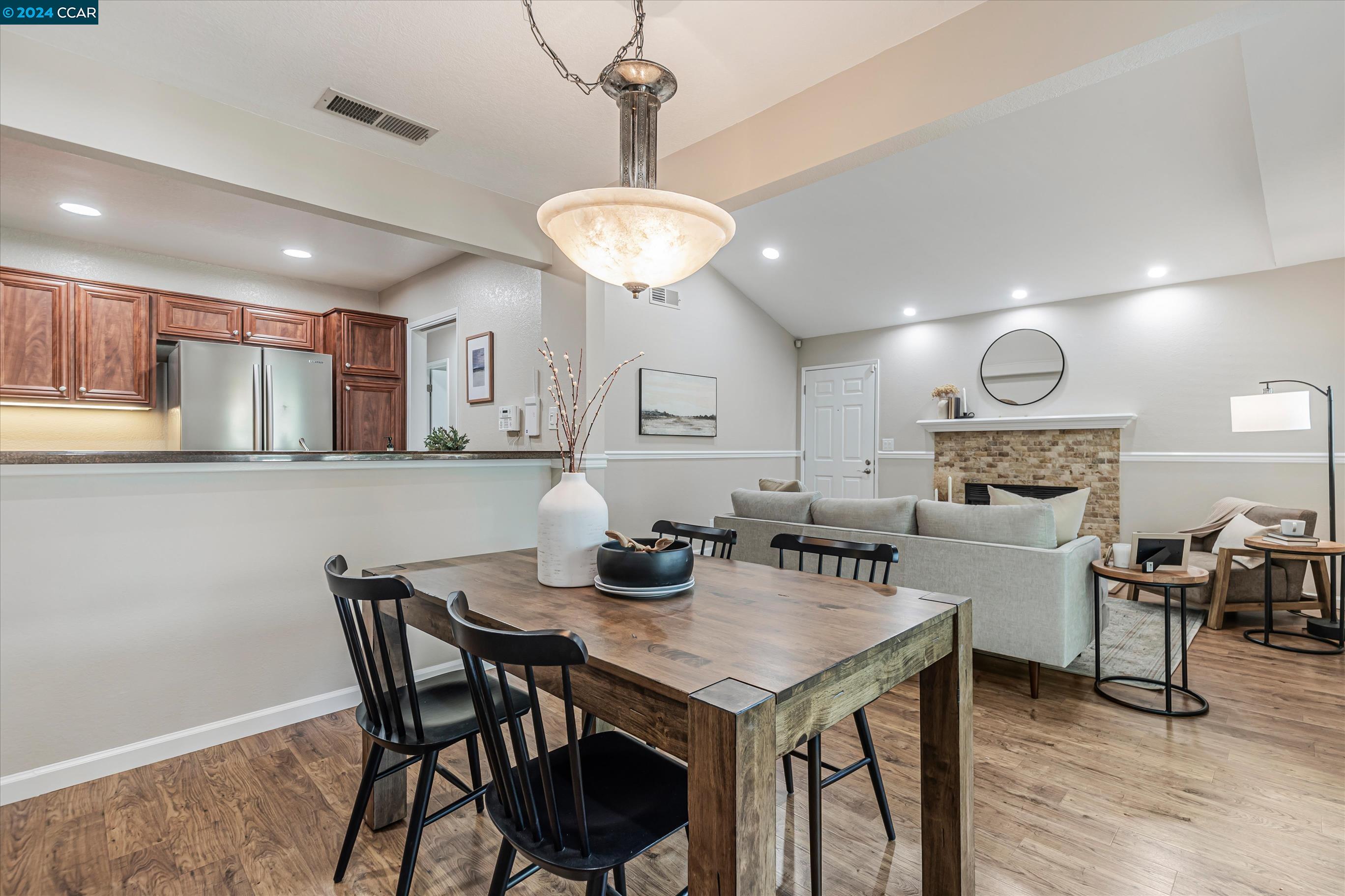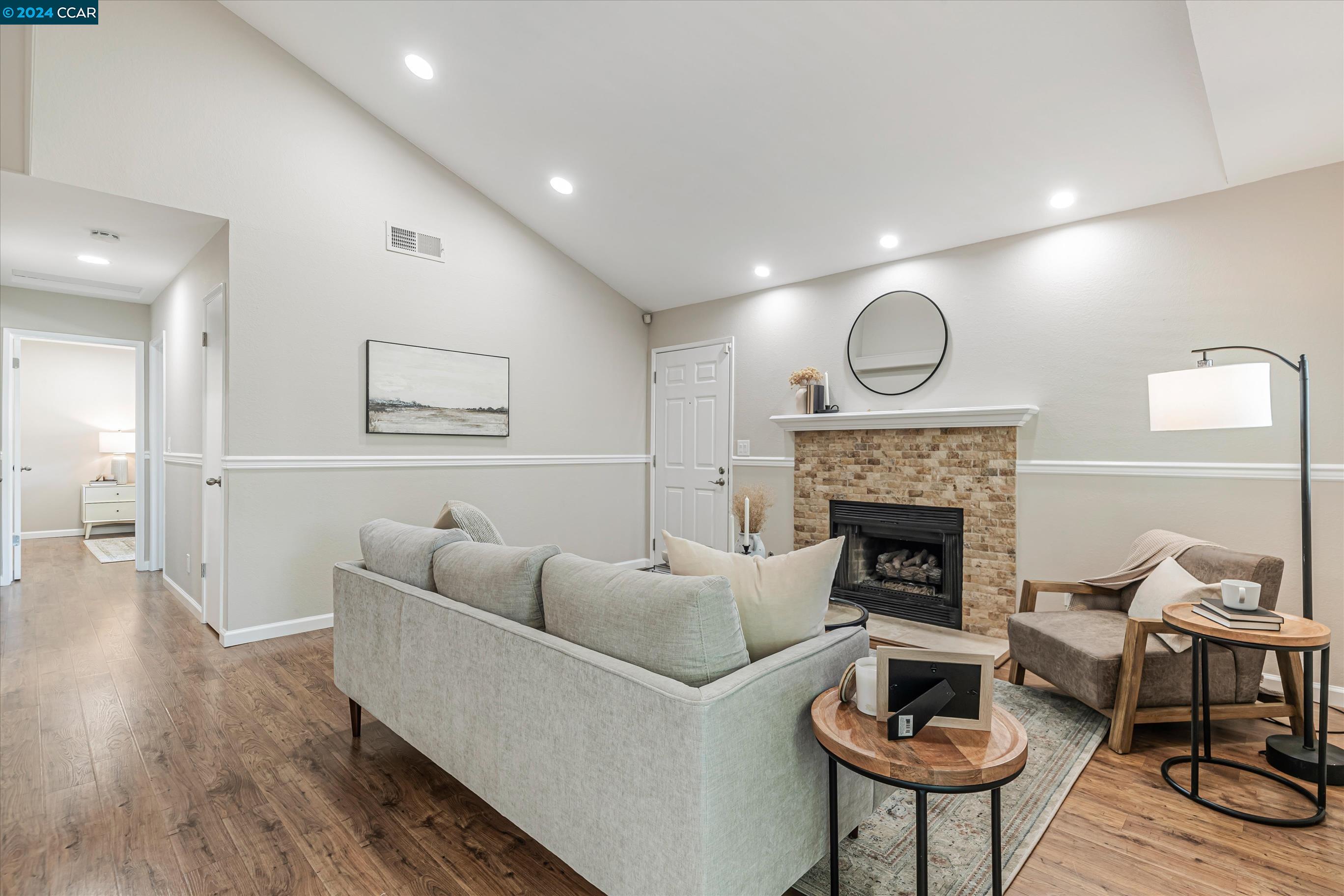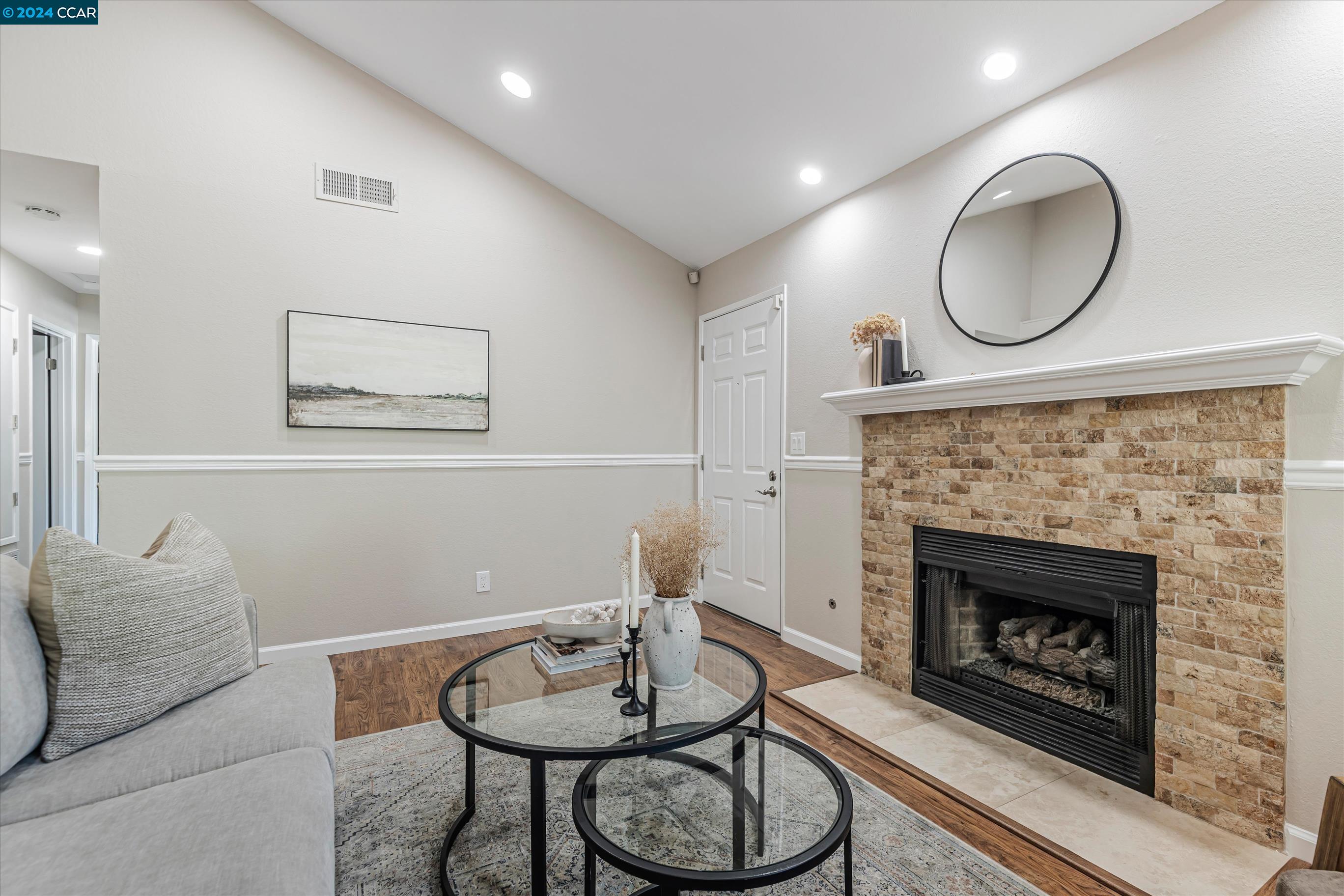 Completely Transformed Condo in Twin Creeks - A Rare Find! Experience the ultimate in modern living with this newly redone 2-bed, 1-bath condo in the highly desirable Compton Place. Unlike anything else on the market, this stunning end-unit townhome has been completely upgraded from top to bottom. From the brand-new AC to the sleek stainless steel appliances, solid wood flooring, and a fully remodeled, designer-inspired shower, every detail has been meticulously curated. The open, airy layout and cozy gas fireplace create a warm, inviting atmosphere, while the private patio offers your own outdoor retreat. Additional highlights include dual-pane windows, two dedicated parking spots, in-unit laundry. The fully renovated community pool is the perfect place to unwind. With shops, restaurants, top-rated schools, and San Ramon City Center just a short walk away, this exceptional home is truly one of a kind. Don't wait--this rare gem won't be available for long!