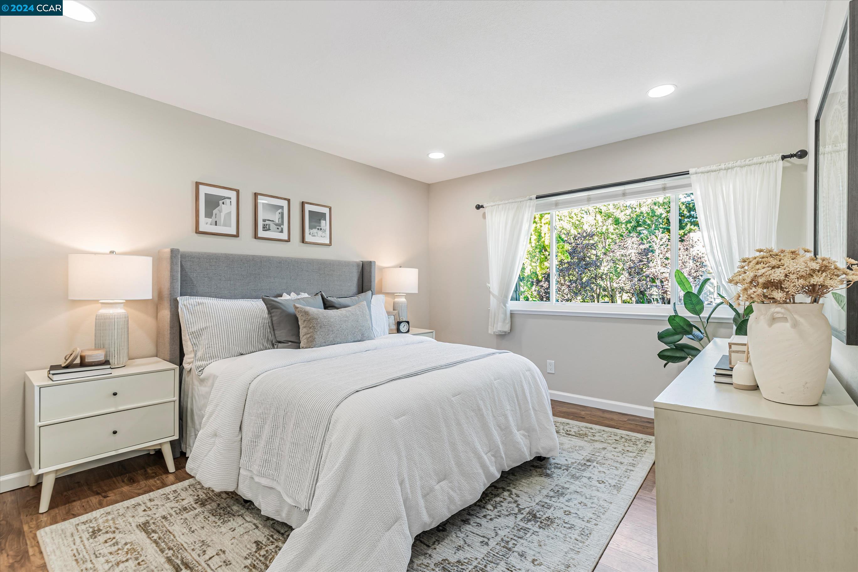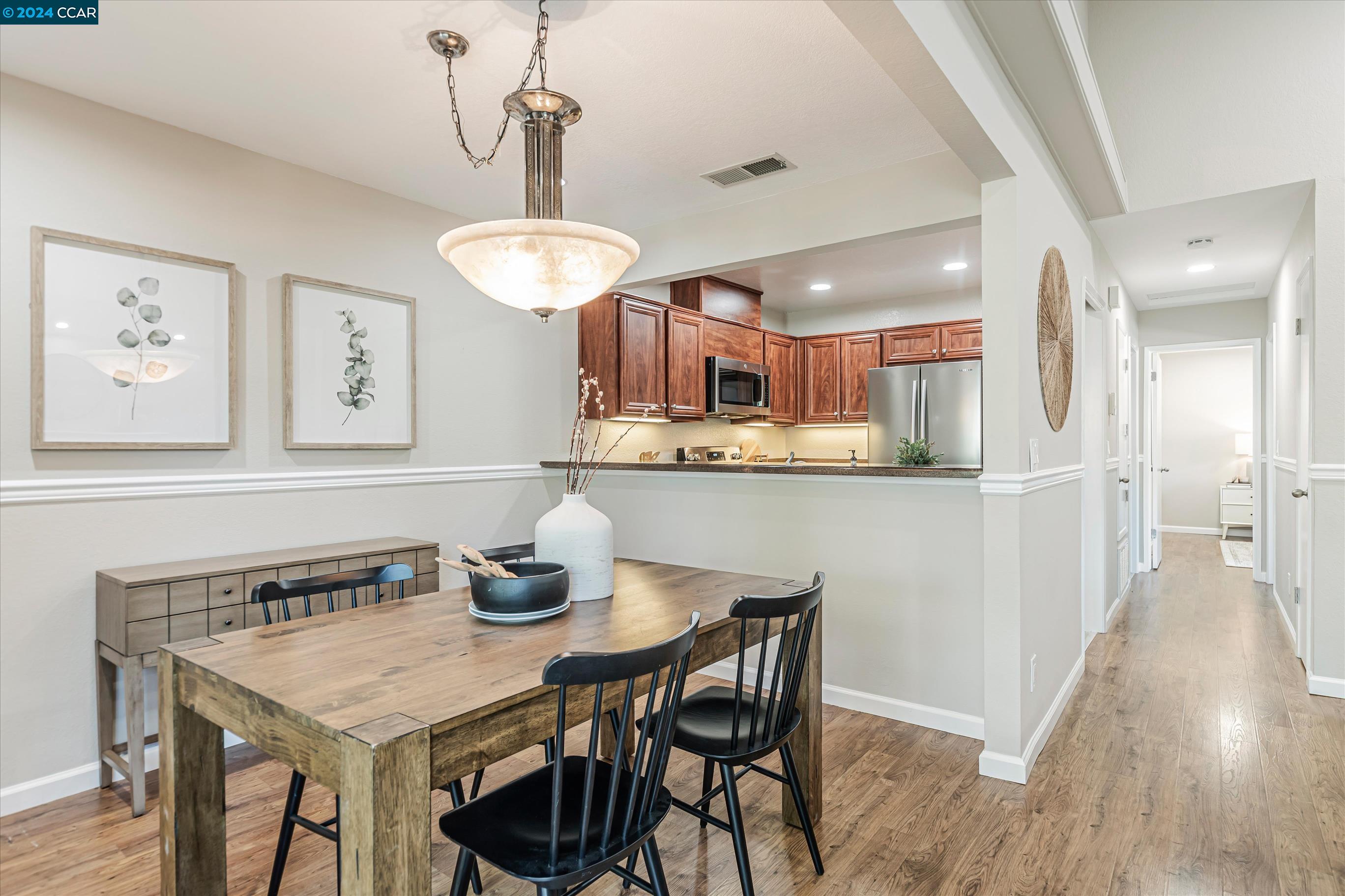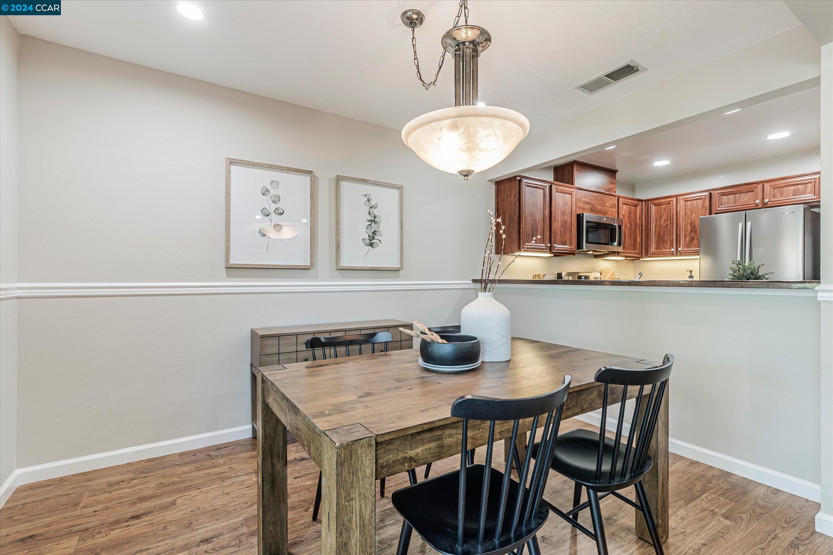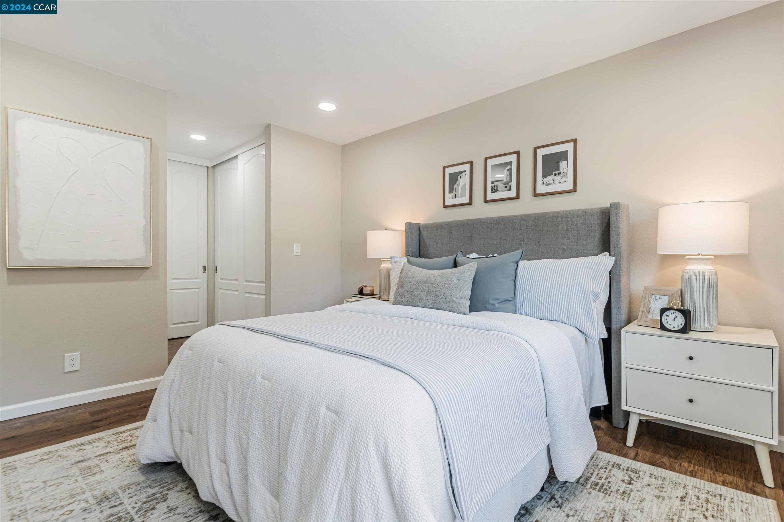 Completely Transformed Condo in Twin Creeks - A Rare Find! Experience the ultimate in modern living with this newly redone 2-bed, 1-bath condo in the highly desirable Compton Place. Unlike anything else on the market, this stunning end-unit townhome has been completely upgraded from top to bottom. From the brand-new AC to the sleek stainless steel appliances, solid wood flooring, and a fully remodeled, designer-inspired shower, every detail has been meticulously curated. The open, airy layout and cozy gas fireplace create a warm, inviting atmosphere, while the private patio offers your own outdoor retreat. Additional highlights include dual-pane windows, two dedicated parking spots, in-unit laundry. The fully renovated community pool is the perfect place to unwind. With shops, restaurants, top-rated schools, and San Ramon City Center just a short walk away, this exceptional home is truly one of a kind. Don't wait--this rare gem won't be available for long!