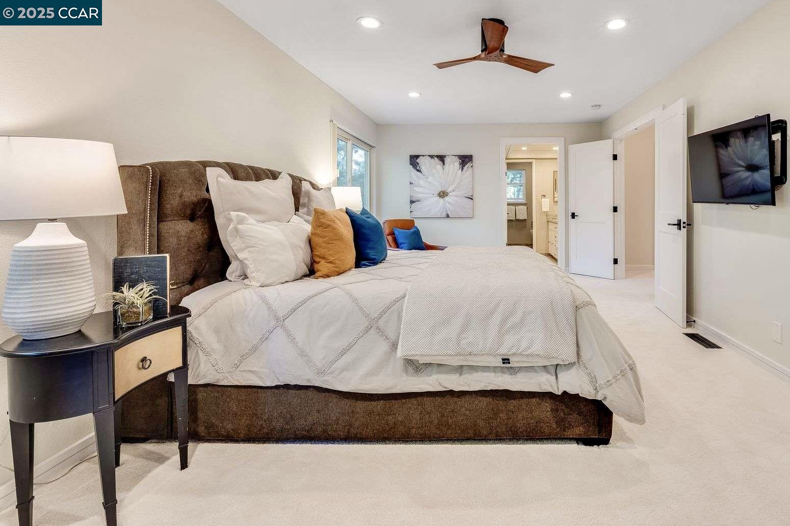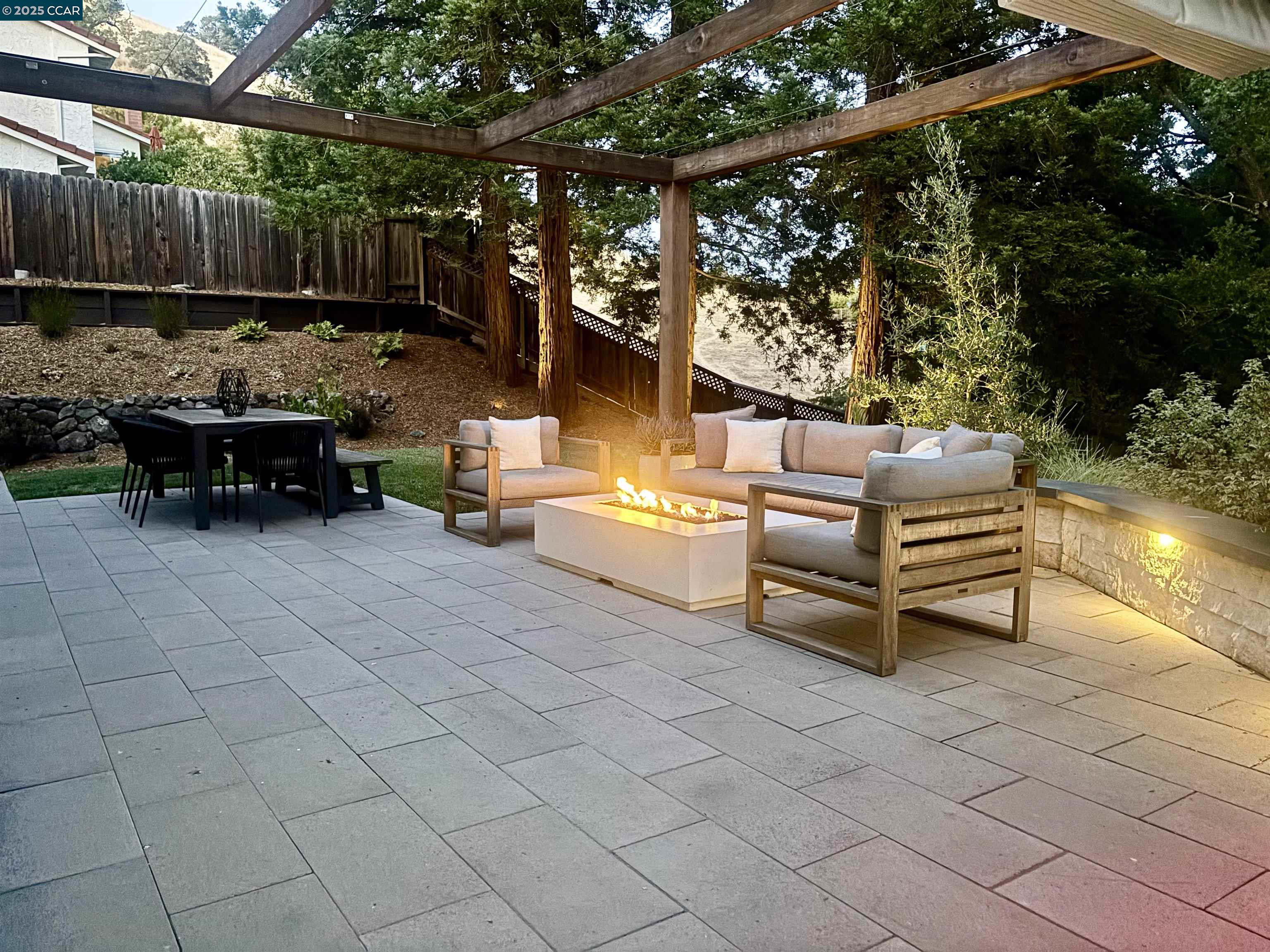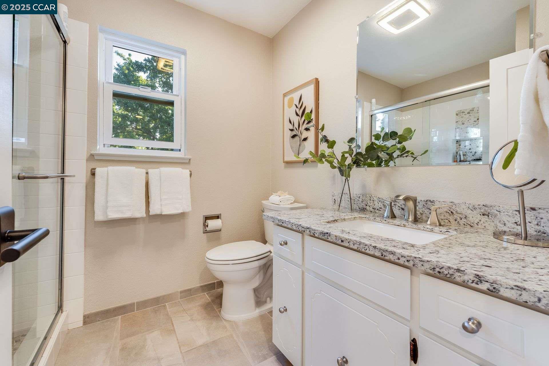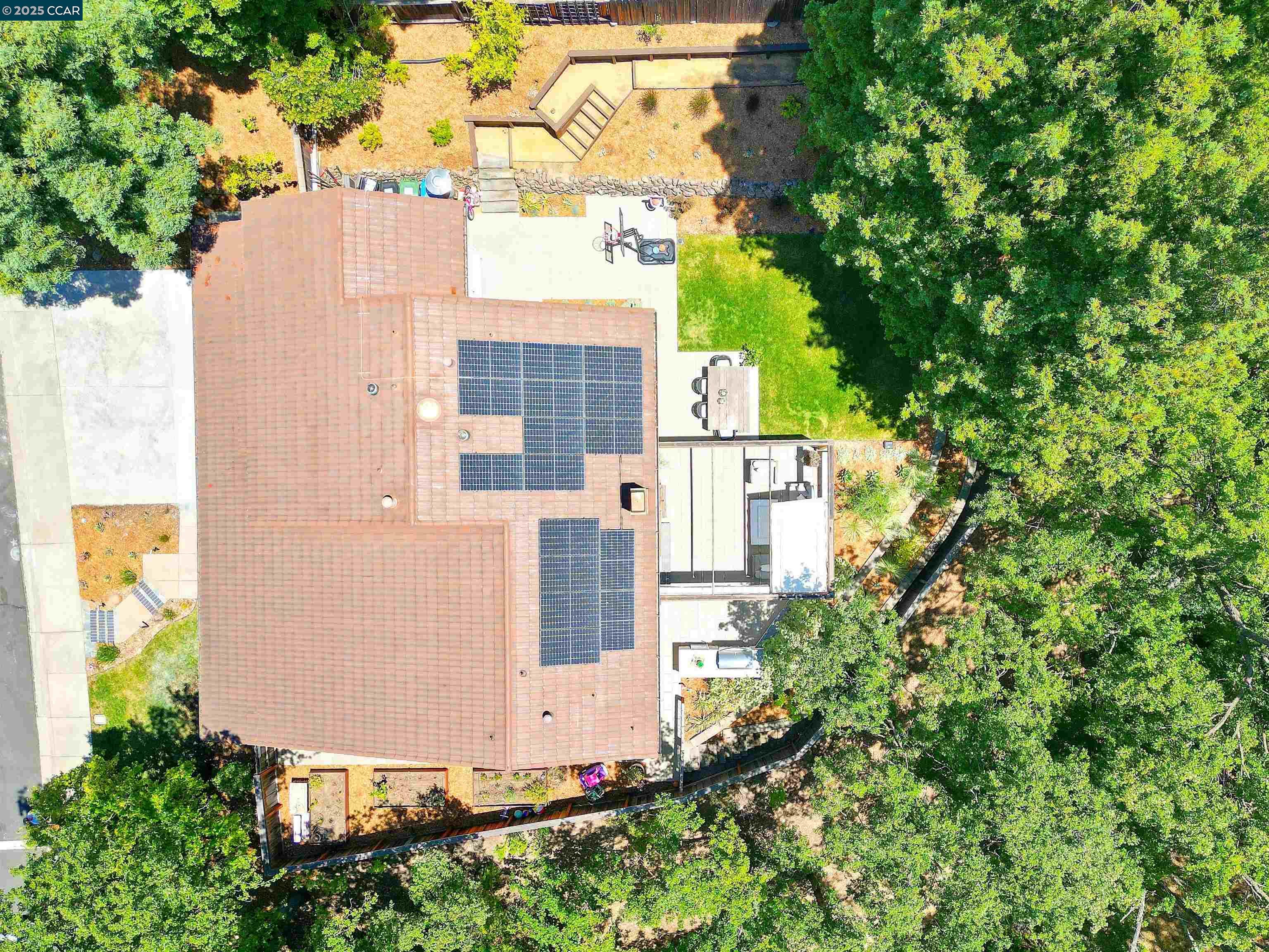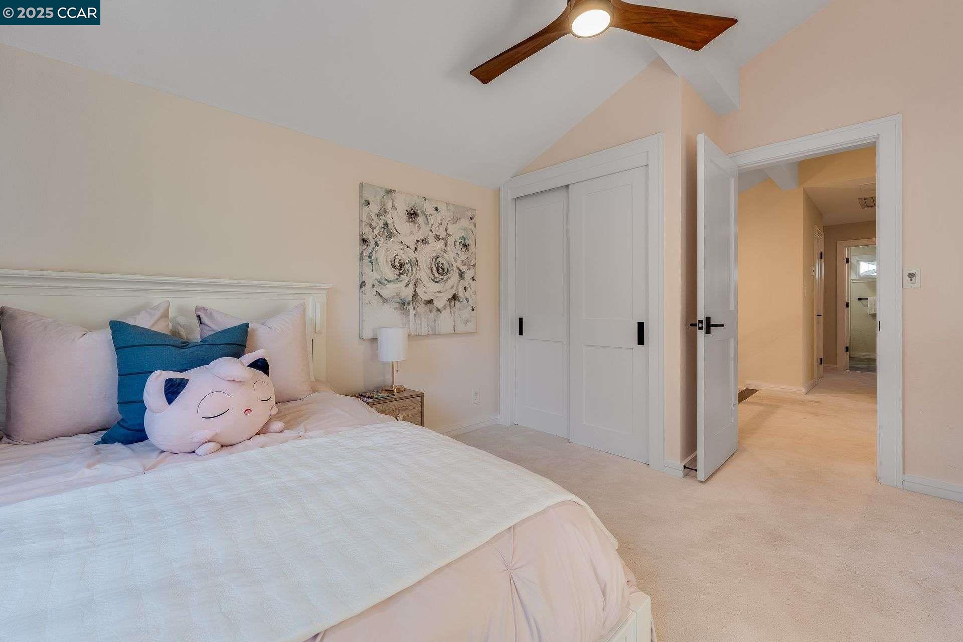 Beautiful new listing in Rudgear Meadows! No expense spared on this highly updated home that includes owned solar. Stylish Modern kitchen that features quartz counters w/tile backsplash, SS appliances, gas range, recessed lighting, under cabinet lighting & breakfast bar. The adjacent family room w/hardwood floors, recessed lighting & wood burning fireplace. The light filled formal living & dining room feature vaulted ceilings, recessed lighting, engineered wood floors & an amazing Napa inspired custom temperature-controlled wine cellar. A spacious primary bedroom w/double door entry, recessed lighting, ceiling fan & full bathroom w/dual sink vanities, walk-in closet & stall shower. There are 3 additional bedrooms & a beautifully remodeled bathroom w/two sinks & shower over bathtub. A fabulous entertainer's backyard has an outdoor grill, fire pit, custom covered patio, garden, lawn area & mini sport court all overlooking the open space & trails! So many great features that include a metal roof, owned solar, finished 3 car garage, whole house fan, dual pane windows, Central A/C, laundry room & downstairs 1/2 bath. Excellent Cul-de-sac location, adjacent to walking trails, Rudgear Meadows Pool & Rudgear park. Walnut Creek schools & Acalanes school district.