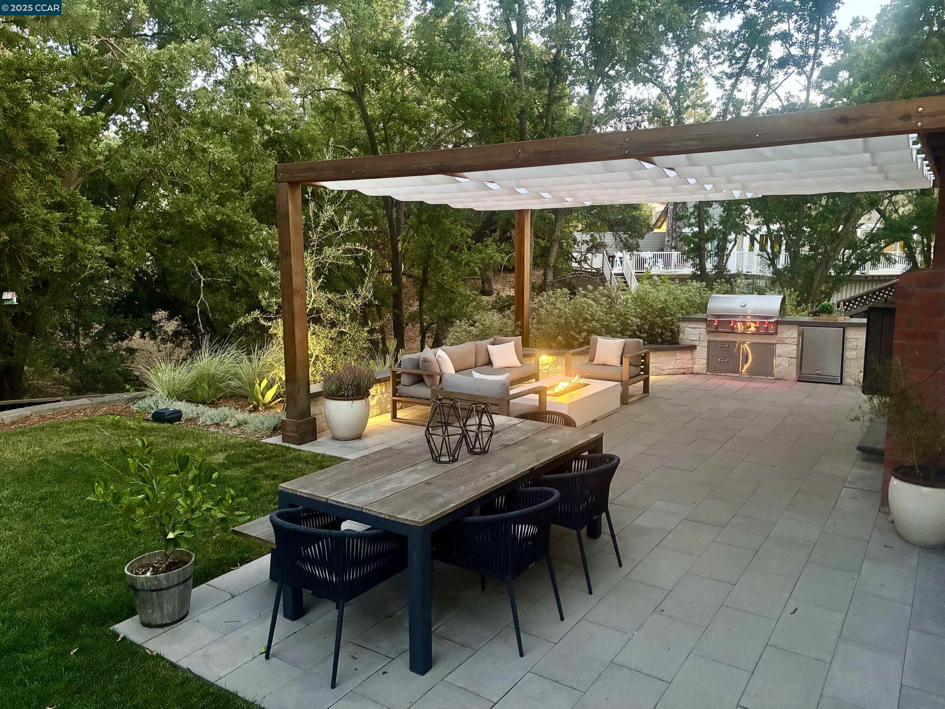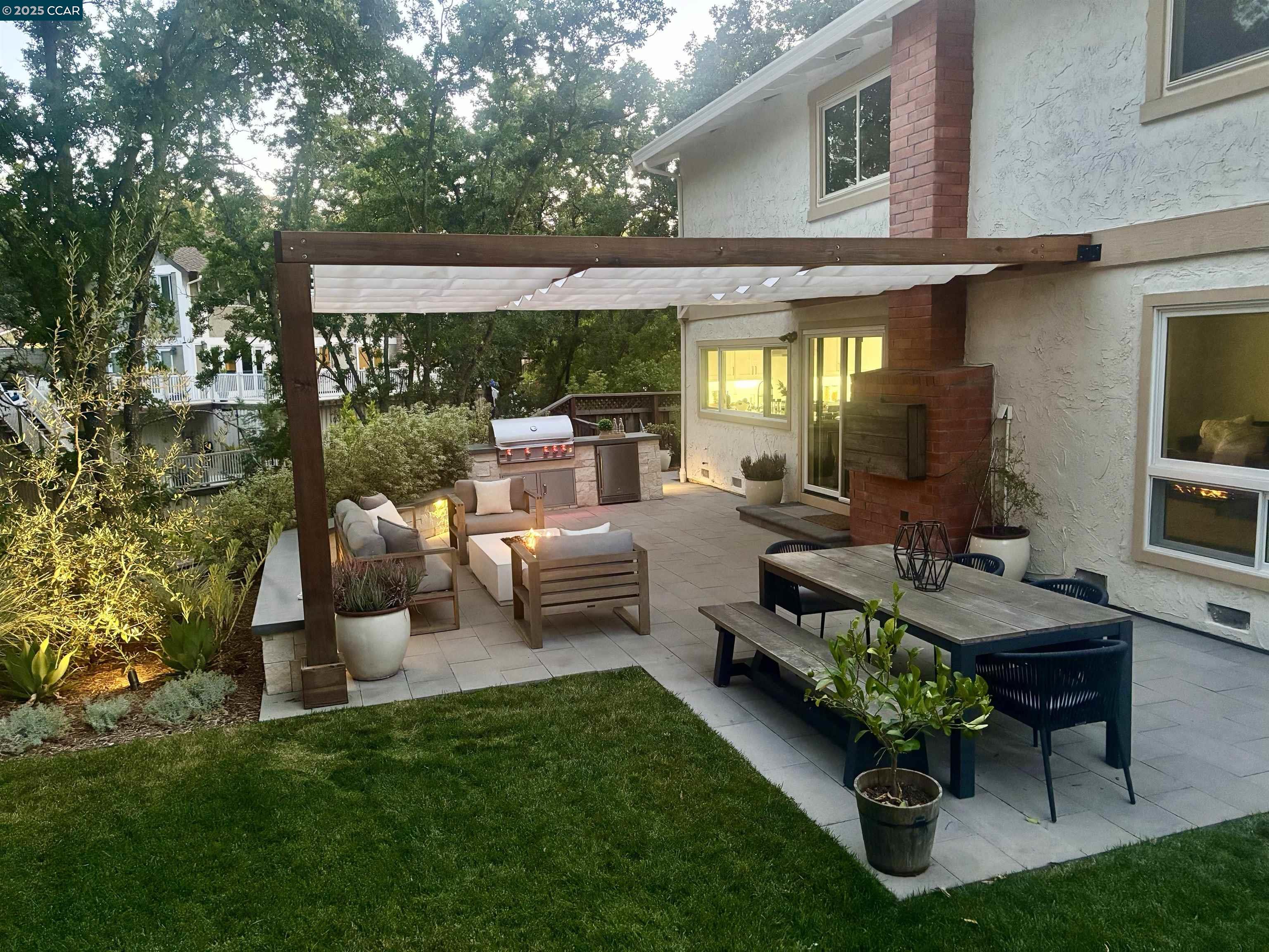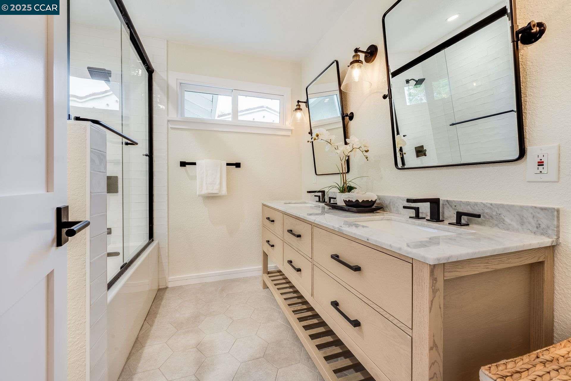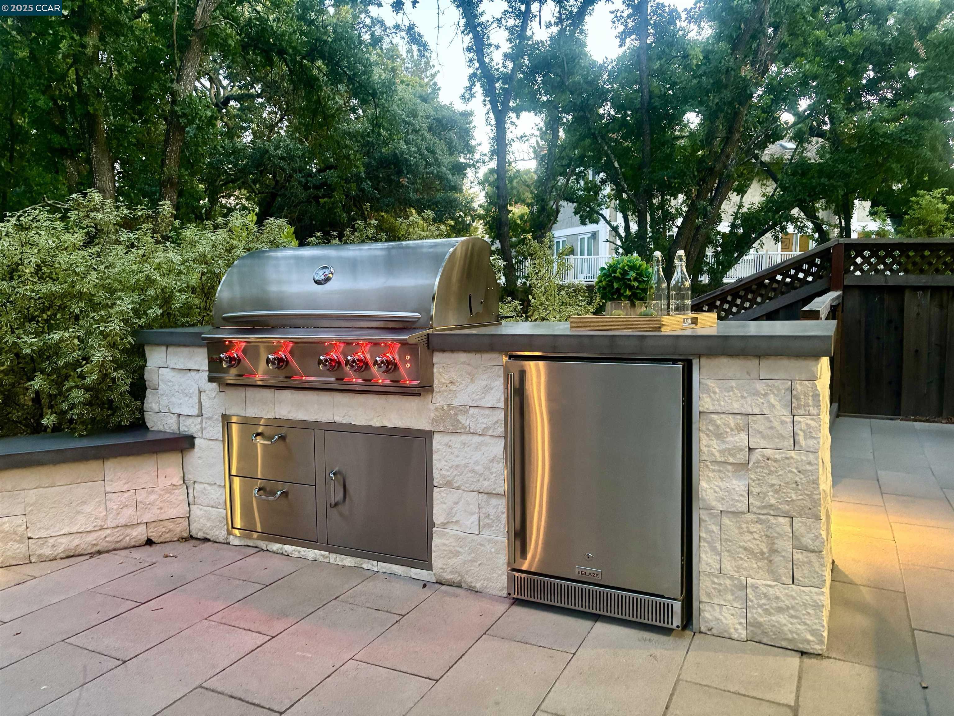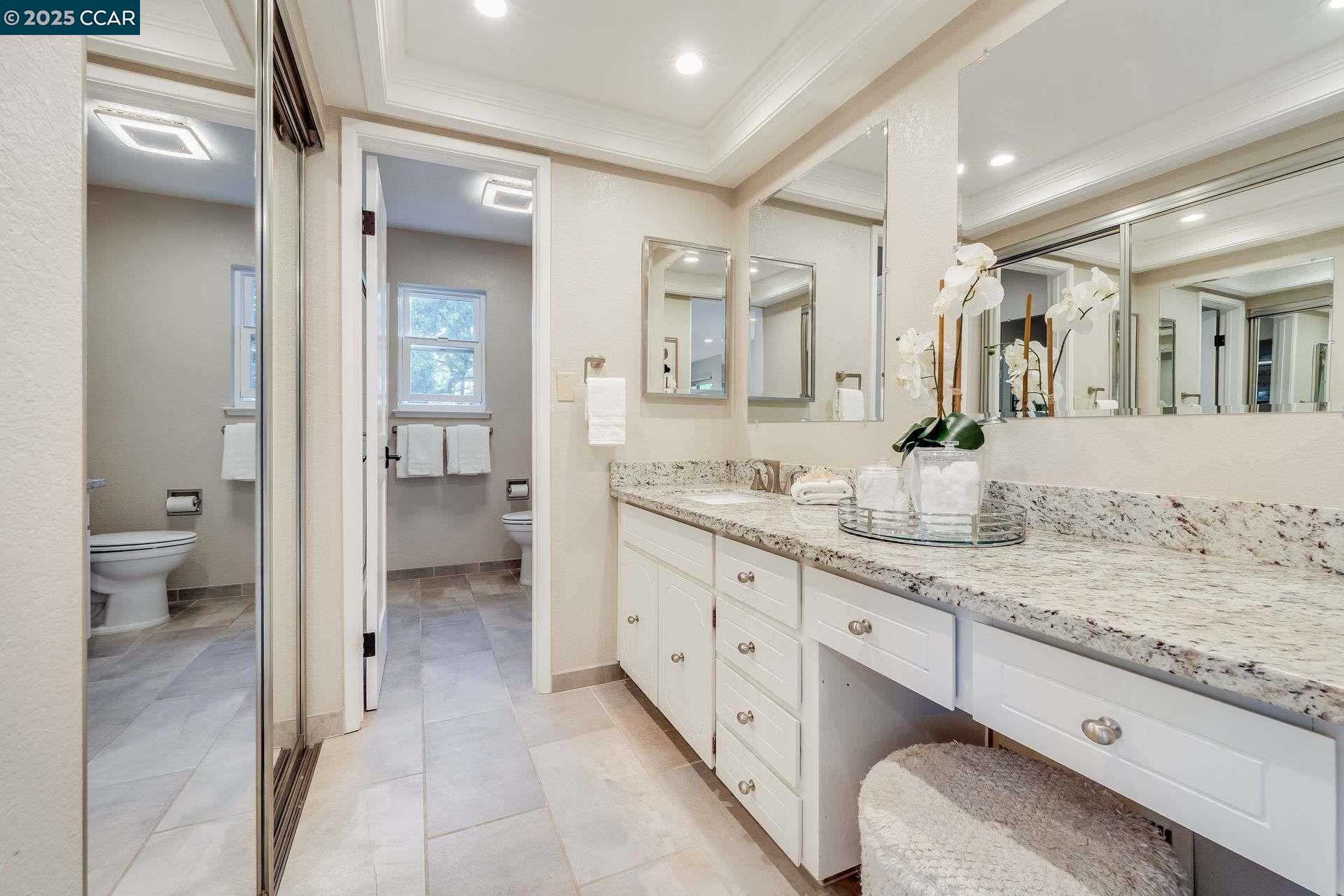 Beautiful new listing in Rudgear Meadows! No expense spared on this highly updated home that includes owned solar. Stylish Modern kitchen that features quartz counters w/tile backsplash, SS appliances, gas range, recessed lighting, under cabinet lighting & breakfast bar. The adjacent family room w/hardwood floors, recessed lighting & wood burning fireplace. The light filled formal living & dining room feature vaulted ceilings, recessed lighting, engineered wood floors & an amazing Napa inspired custom temperature-controlled wine cellar. A spacious primary bedroom w/double door entry, recessed lighting, ceiling fan & full bathroom w/dual sink vanities, walk-in closet & stall shower. There are 3 additional bedrooms & a beautifully remodeled bathroom w/two sinks & shower over bathtub. A fabulous entertainer's backyard has an outdoor grill, fire pit, custom covered patio, garden, lawn area & mini sport court all overlooking the open space & trails! So many great features that include a metal roof, owned solar, finished 3 car garage, whole house fan, dual pane windows, Central A/C, laundry room & downstairs 1/2 bath. Excellent Cul-de-sac location, adjacent to walking trails, Rudgear Meadows Pool & Rudgear park. Walnut Creek schools & Acalanes school district.