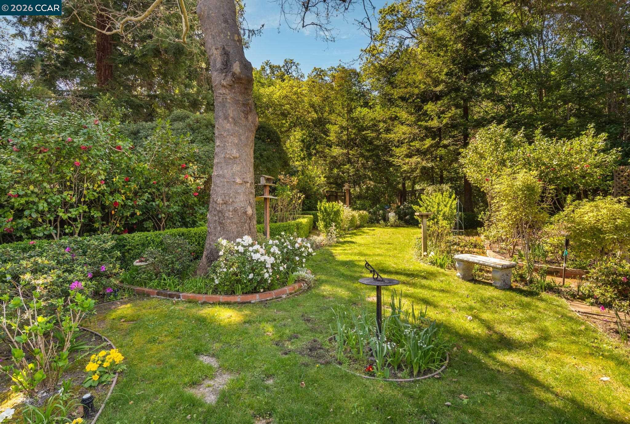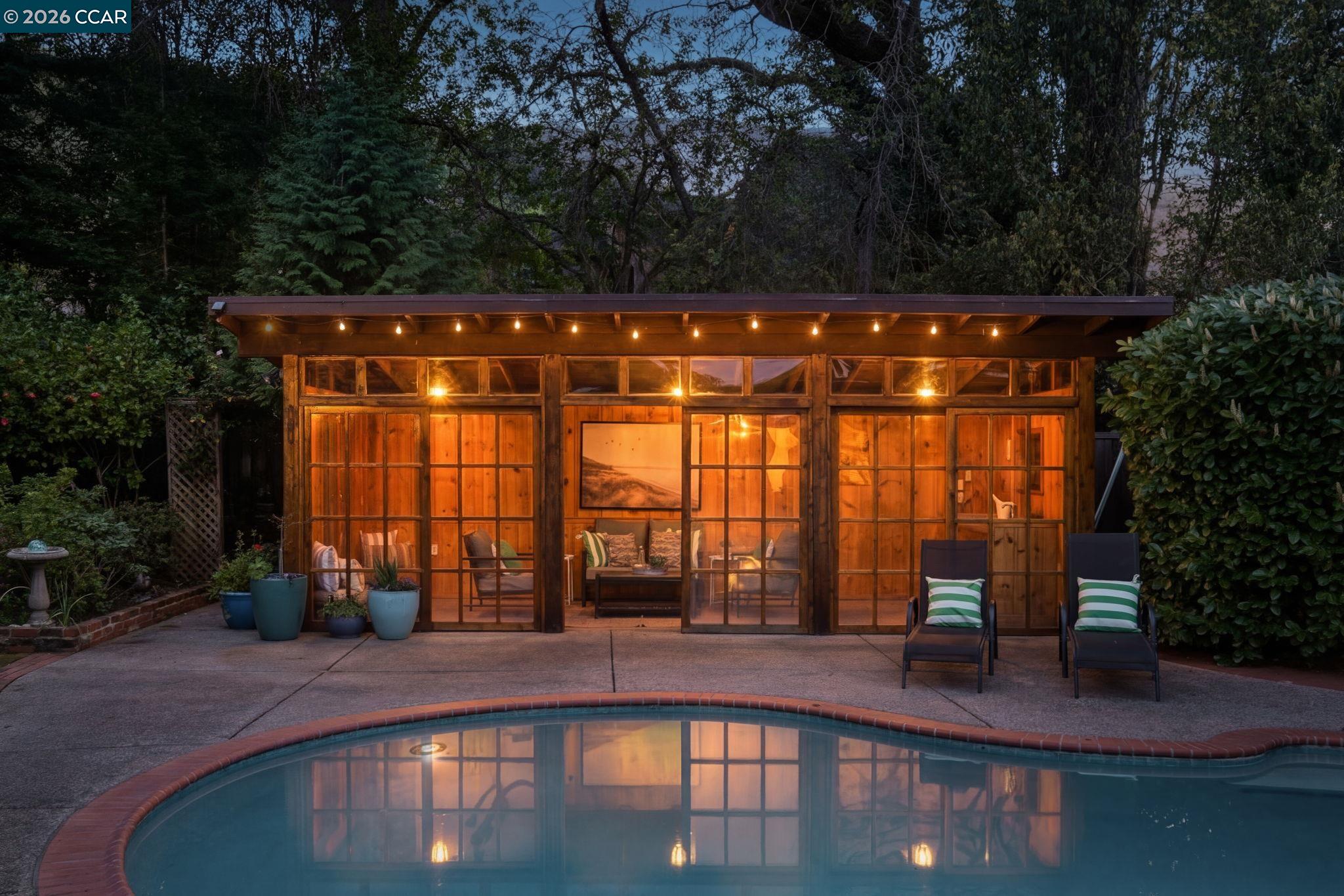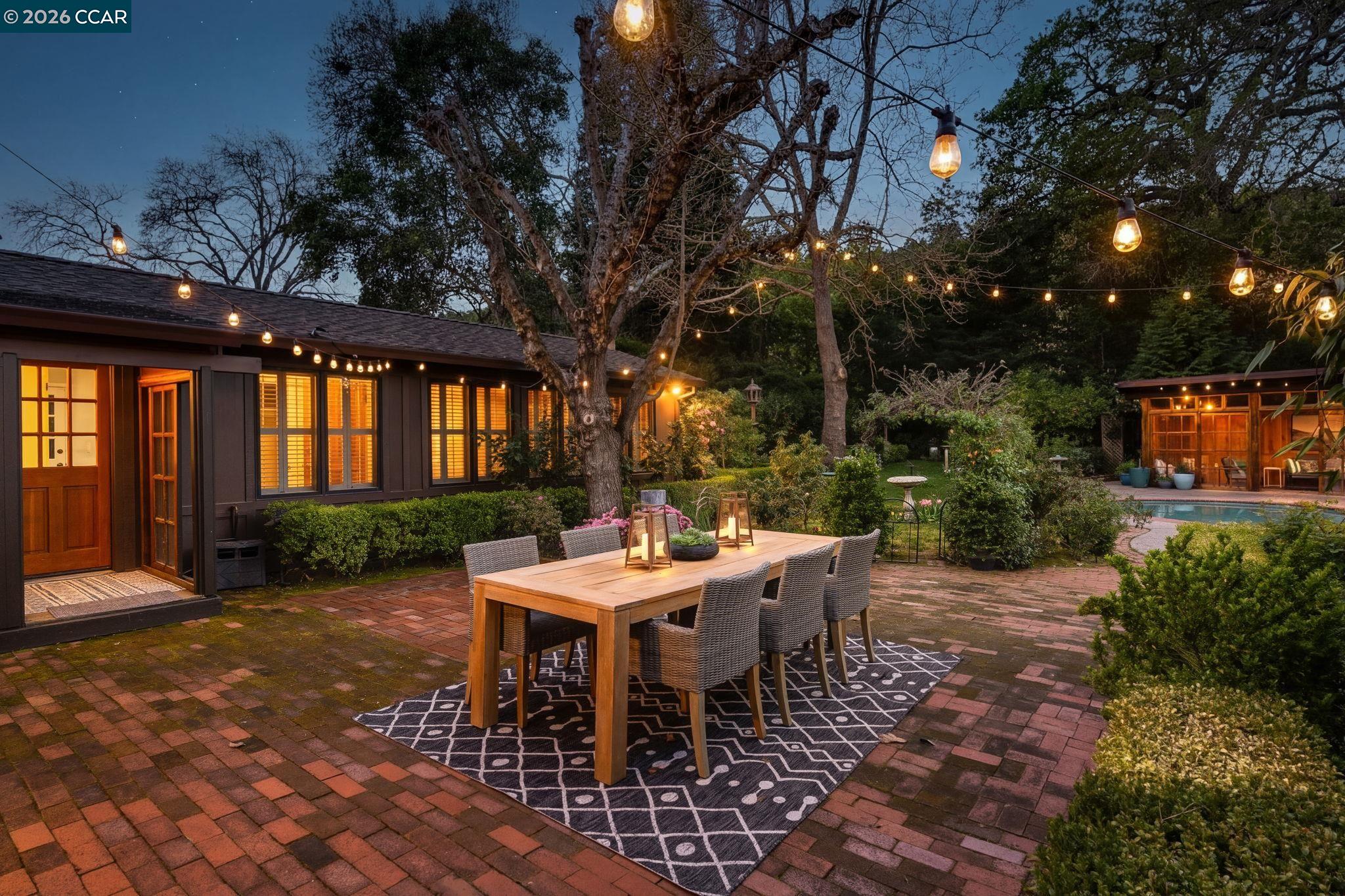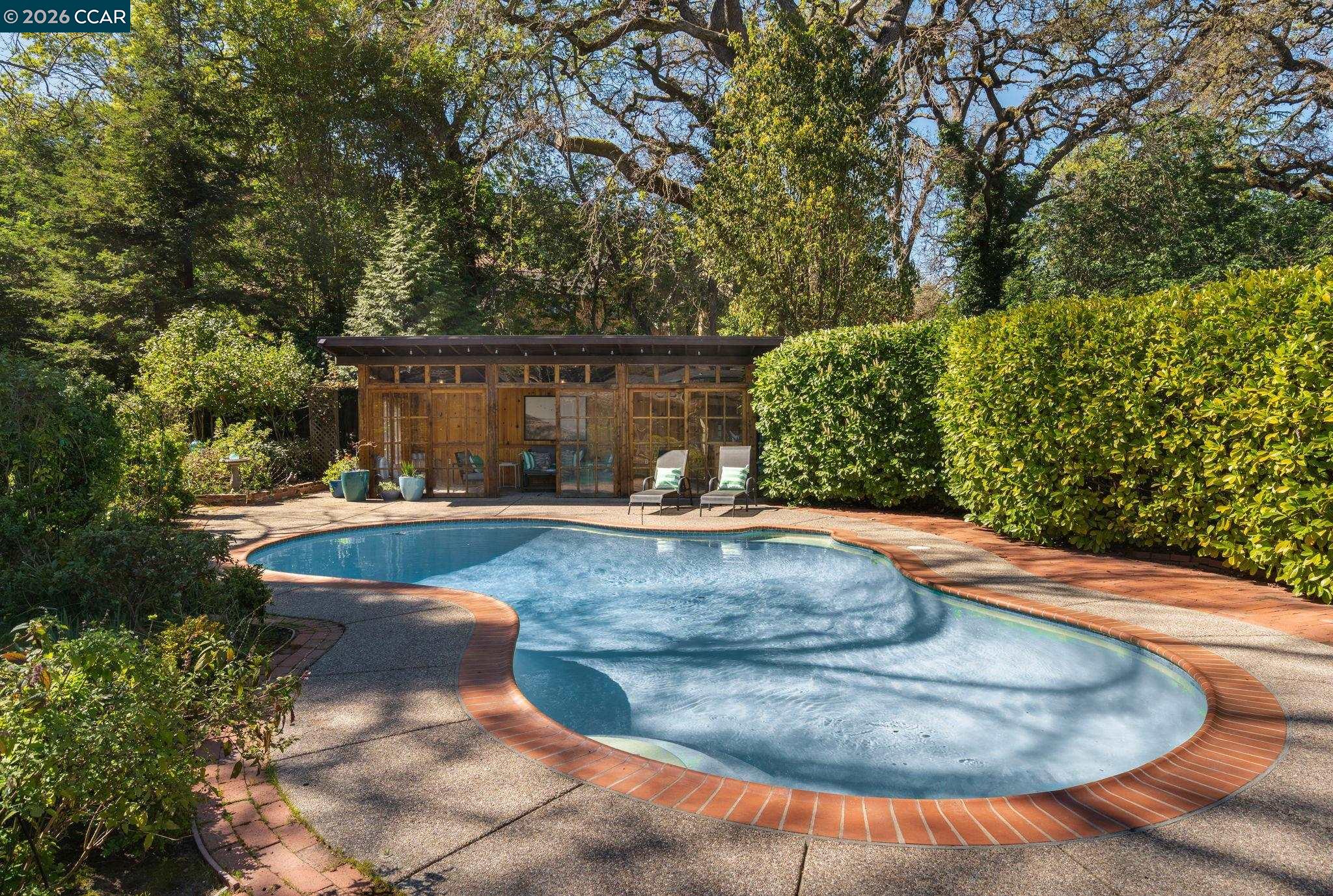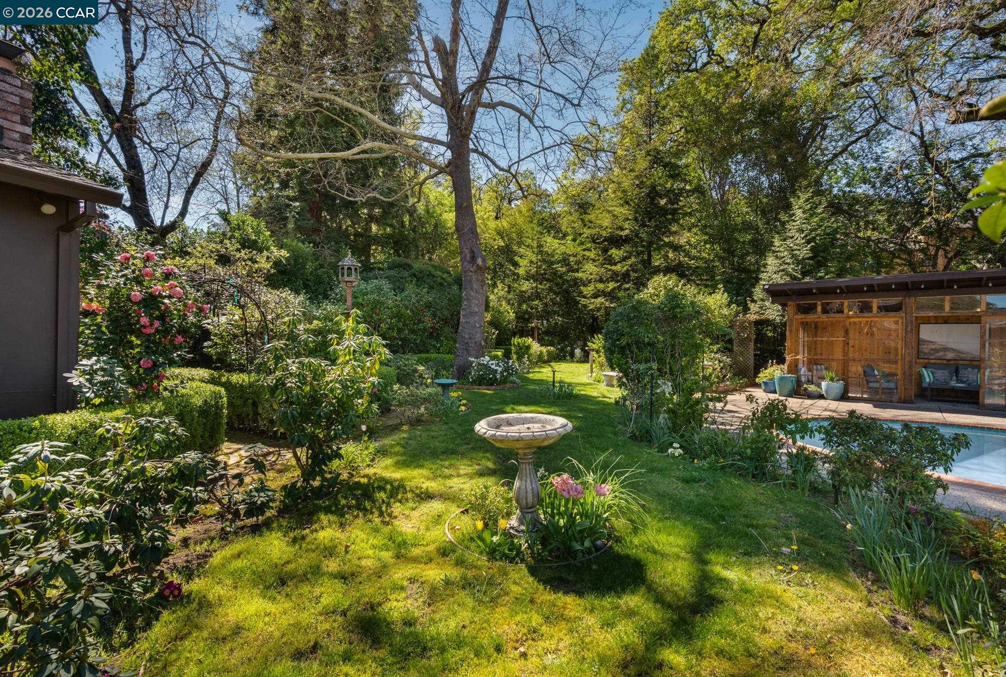 Step into a storybook setting with this enchanting English cottage, where timeless charm meets a garden-inspired lifestyle. Set on a flat .39-acre lot, the single-story home offers 3 bedrooms, 3 baths, and a dedicated office, wrapped in character-rich details including hardwood floors, stained glass accents, vaulted beamed ceilings, and sun-filled skylights. Outside, meandering paths lead through a breathtaking English garden, with a private well to keep the gardens lush, to a sparkling pool and a darling pool house with electricity and water--perfect as a creative retreat, guest space, or effortless entertaining hub.